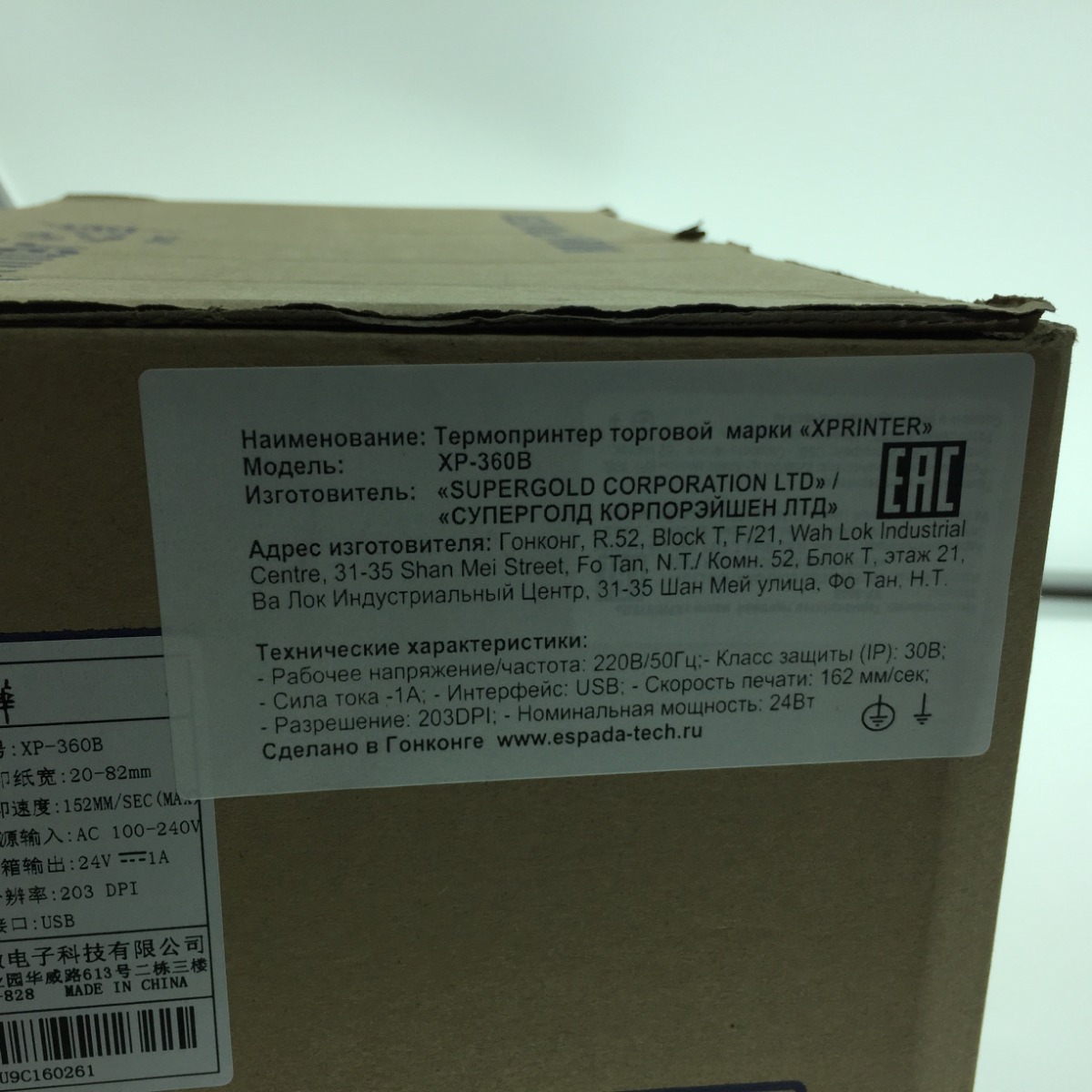 Принтер для чеков/наклеек термотрансферный Xprinter XP365B