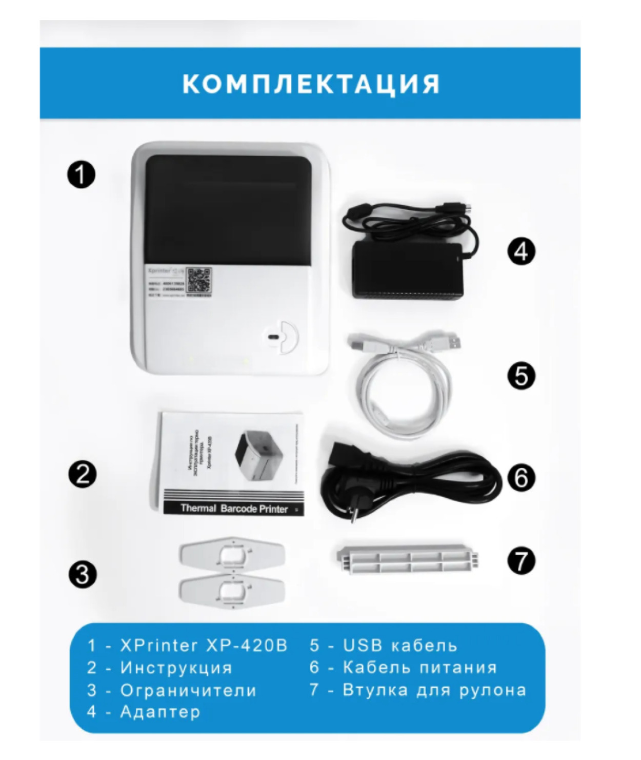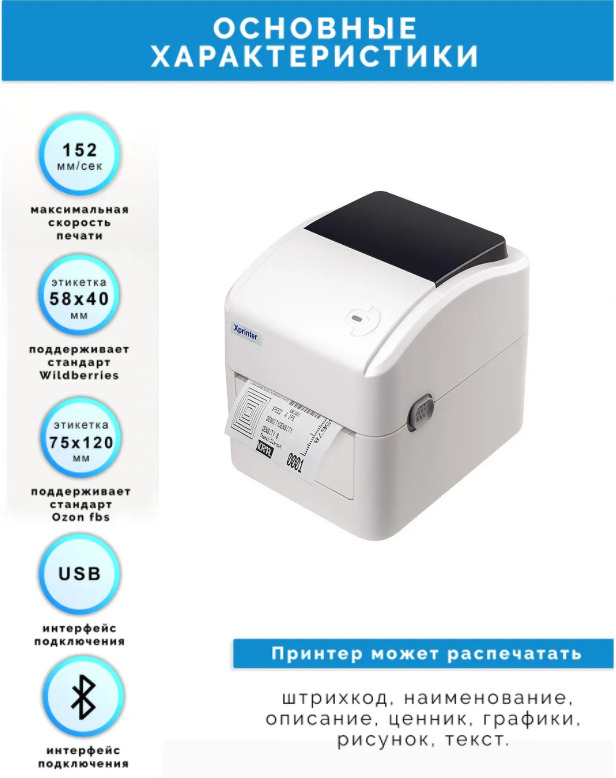 Термальный принтер этикеток Xprinter XP-420B USB+Bluetooth White (белый)