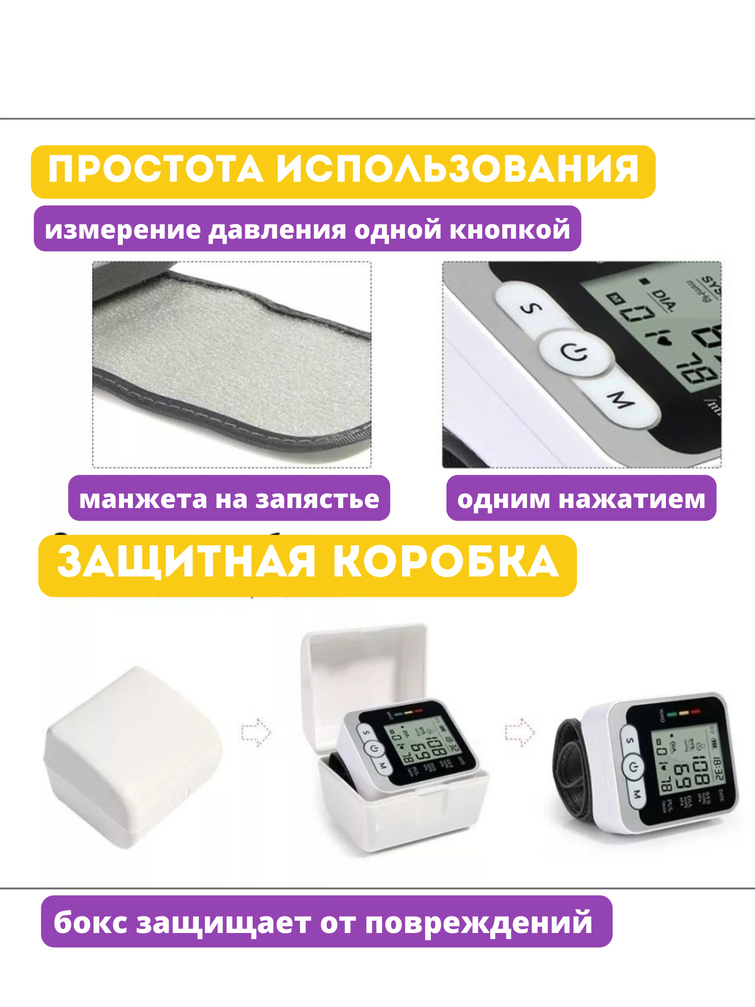 Тонометр ручной на запястье руки / Тонометр автоматический/Аппарат для измерения давления/Измеритель