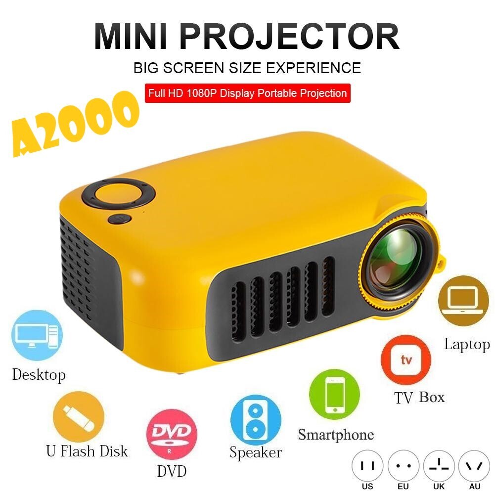 Мини проектор XPX Мини-проектор портативный HD-1080P A2000, желтый