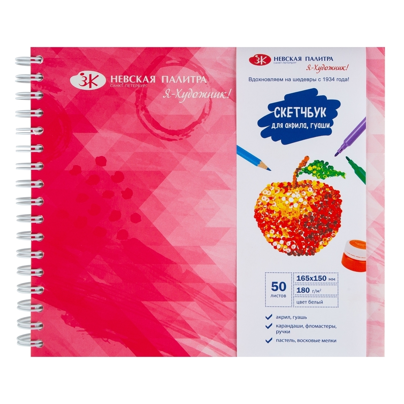 Я-Художник! / Скетчбук (для гуаши и акрила), 180 г/м2, 165х150 мм, 50 л, ЗХК Невская палитра