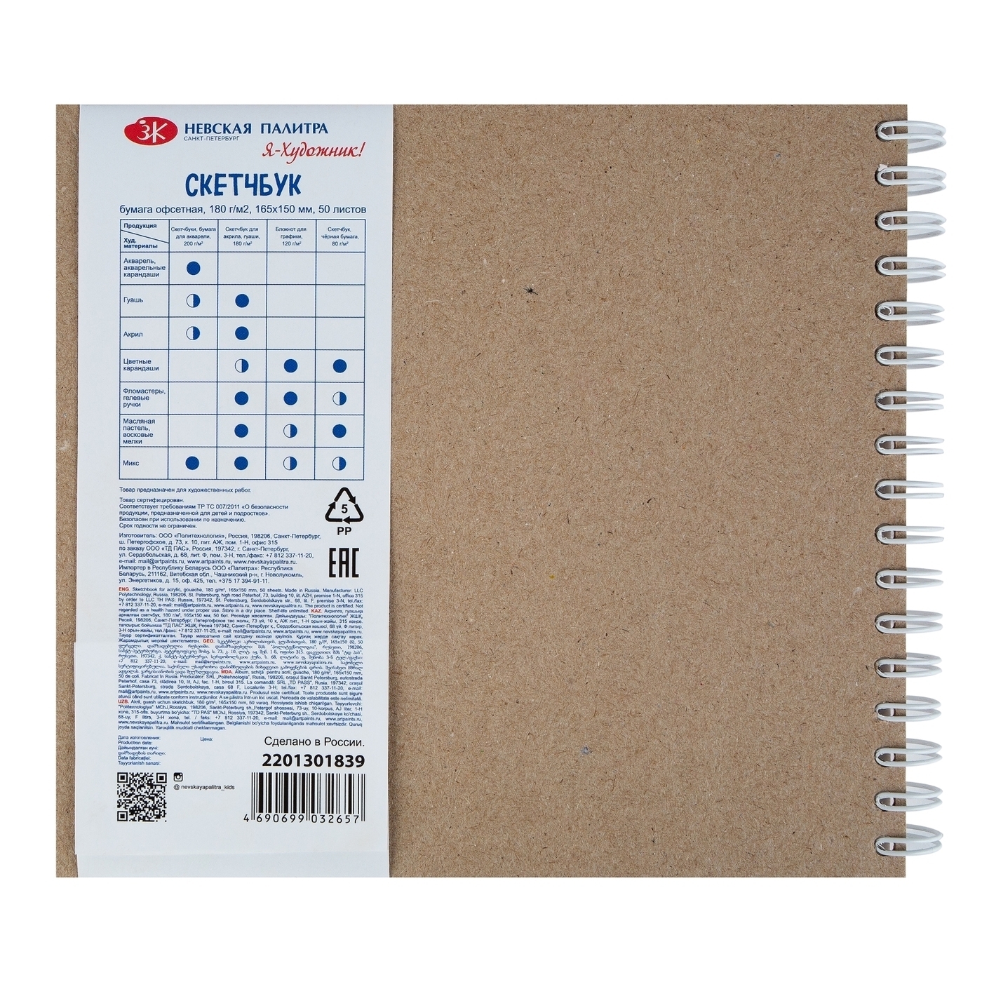 Я-Художник! / Скетчбук, 165х150 мм, плотность 180 г/м2, 50 листов, ЗХК Невская палитра