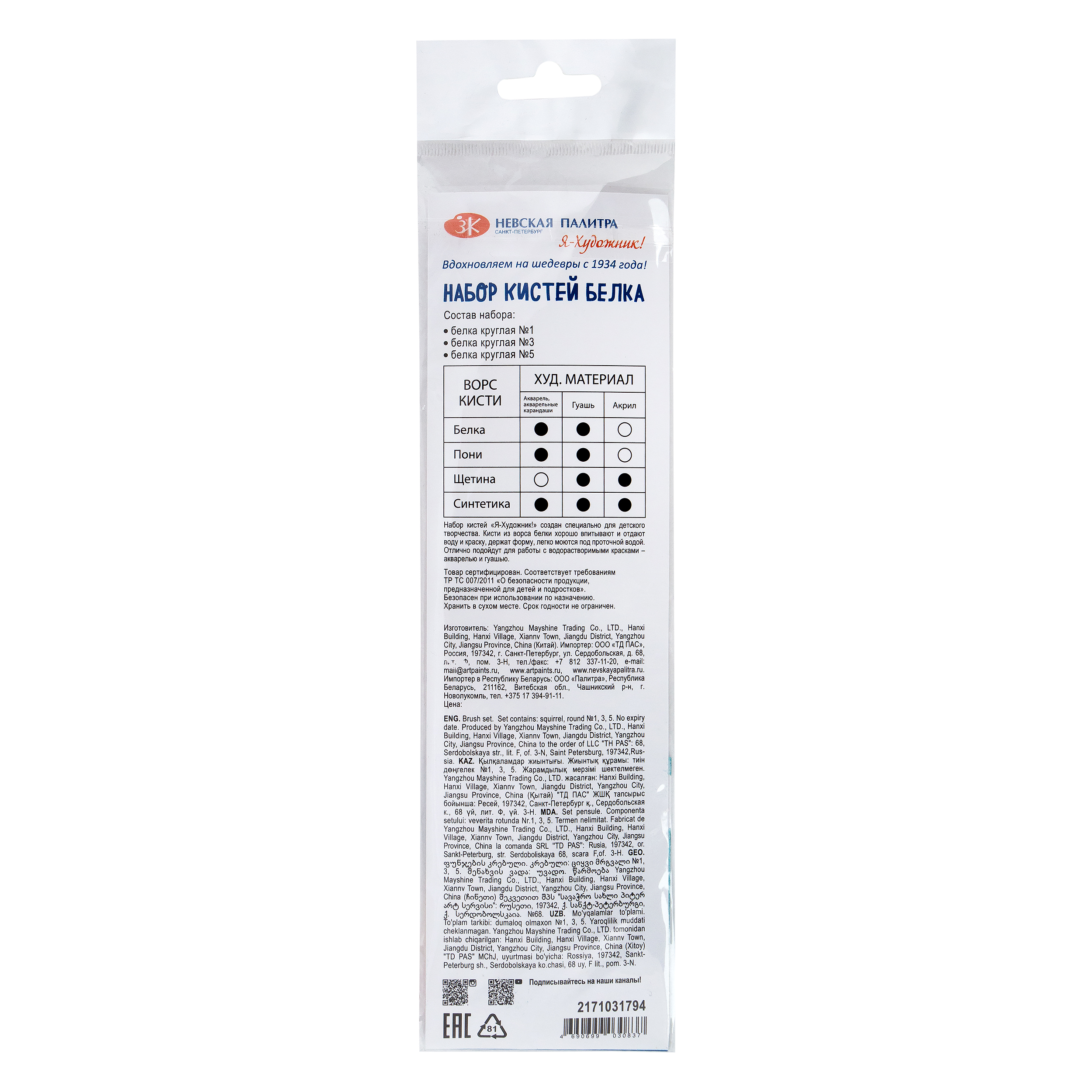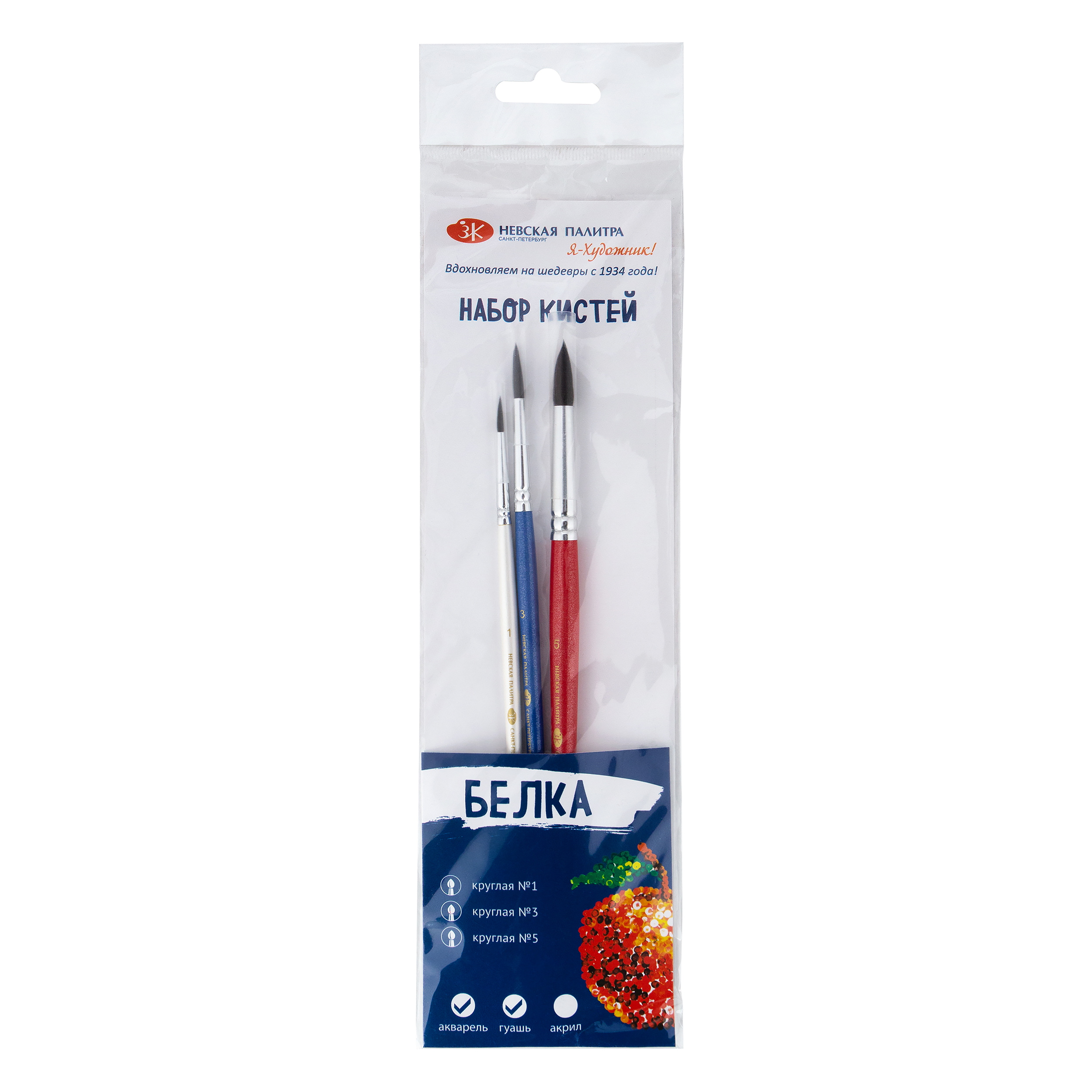 Я-Художник! / Кисти для рисования "Белка микс", 3 штуки, ЗХК Невская палитра