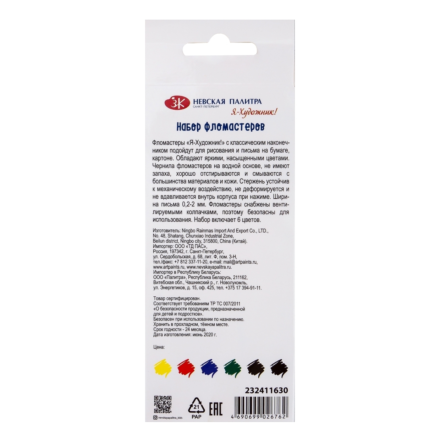 Я-Художник! / Фломастеры на водной основе, 6 цветов, ЗХК Невская палитра