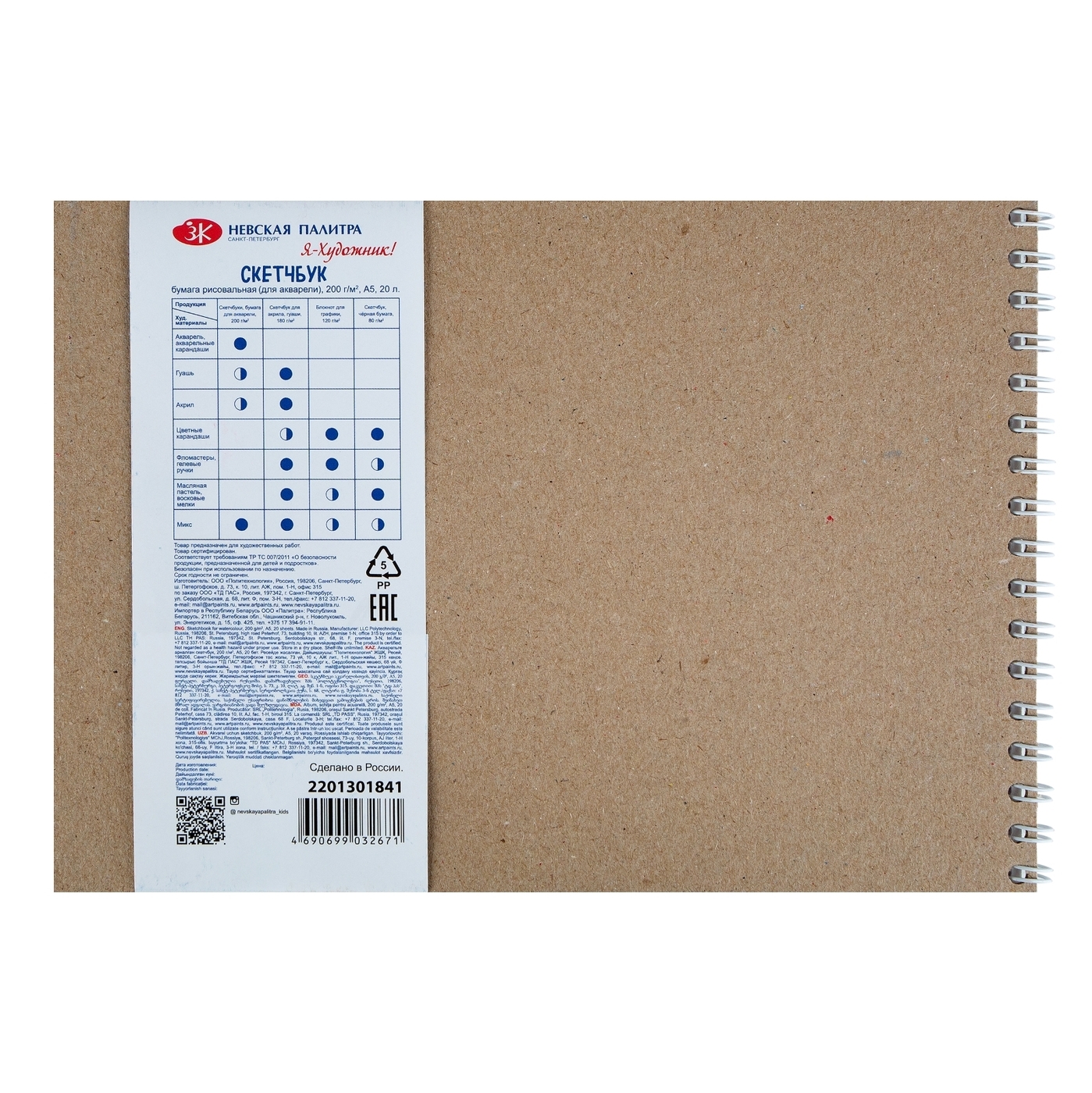 Я-Художник! / Скетчбук (для акварели), 200 г/м2, А5, 20 л, ЗХК Невская палитра