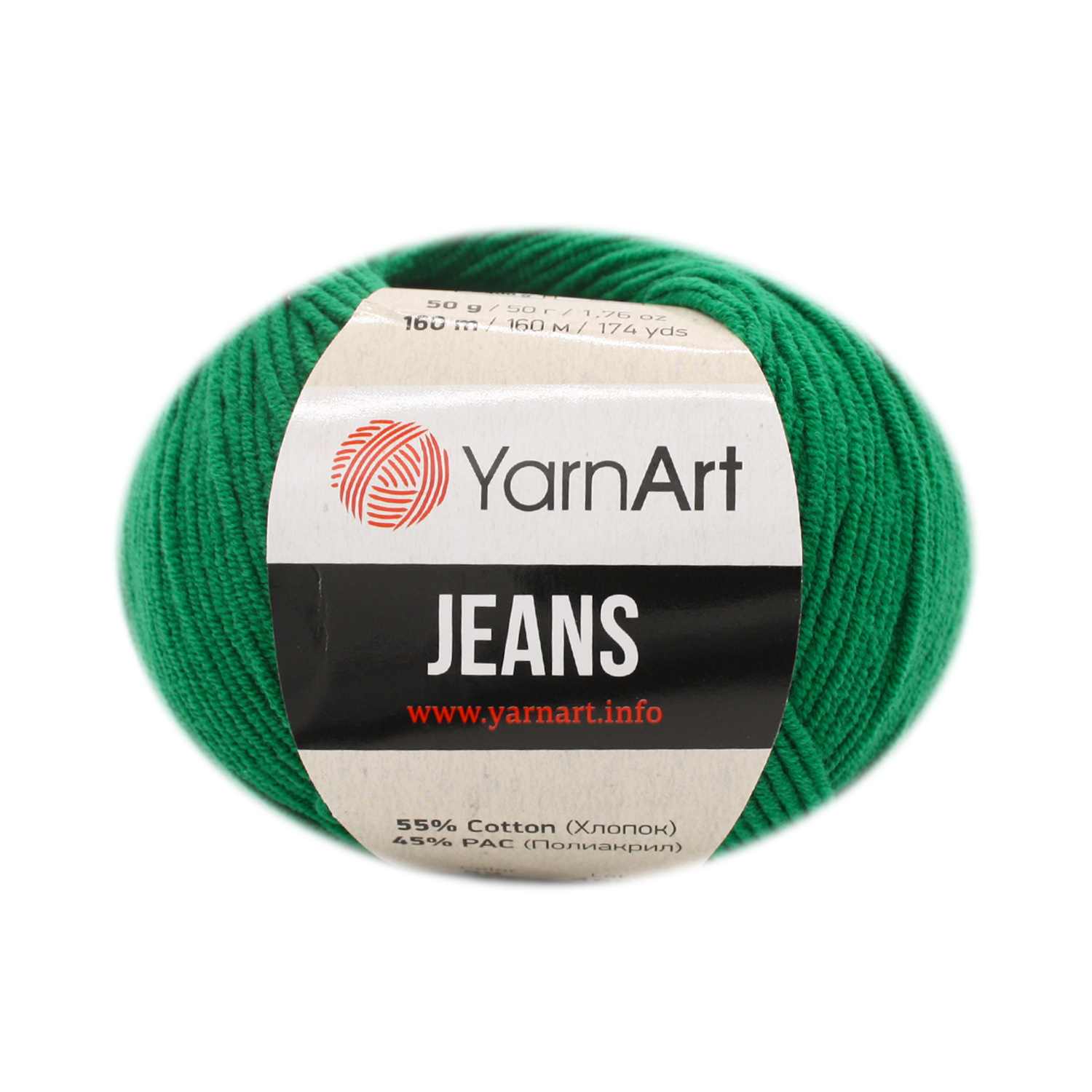 Пряжа YarnArt Jeans- 2 шт, ярко-зеленый (52), 160м/50г, 55% хлопок, 45% полиакрил /ЯрнАрт Джинс/