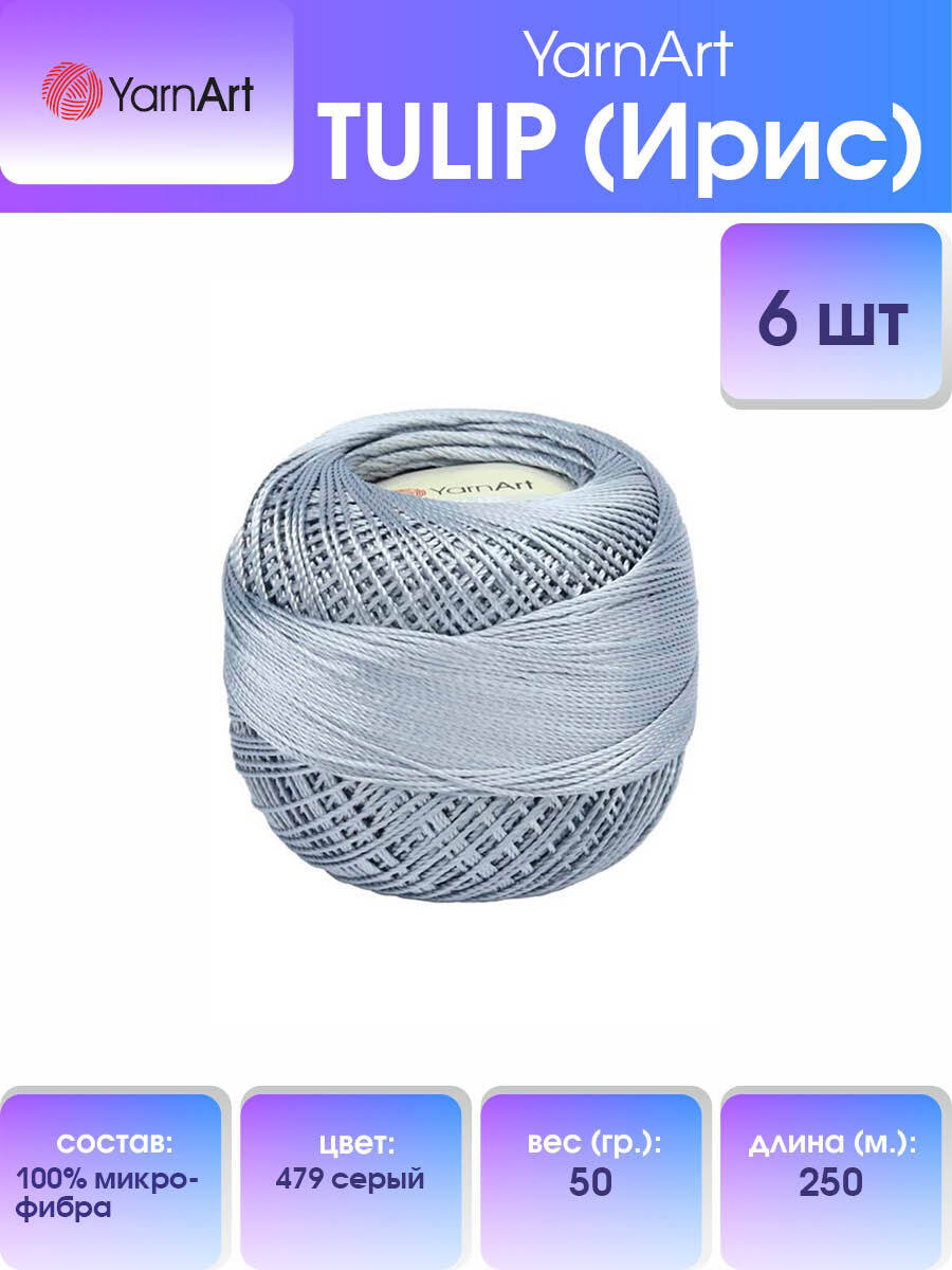 Пряжа YarnArt "TULIP (Ирис)" 50 г, 250 м, 100% м/ф, 6 шт, 372017_479 серый