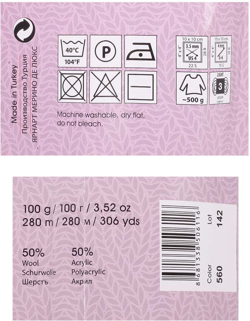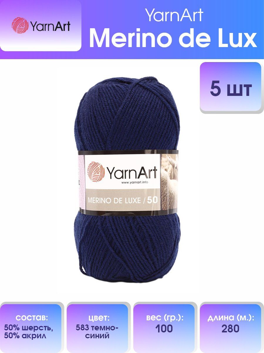 Пряжа YarnArt Merino de Lux, 372049_00015, 583 темно-синий, 100 г х 5 шт, 280 м
