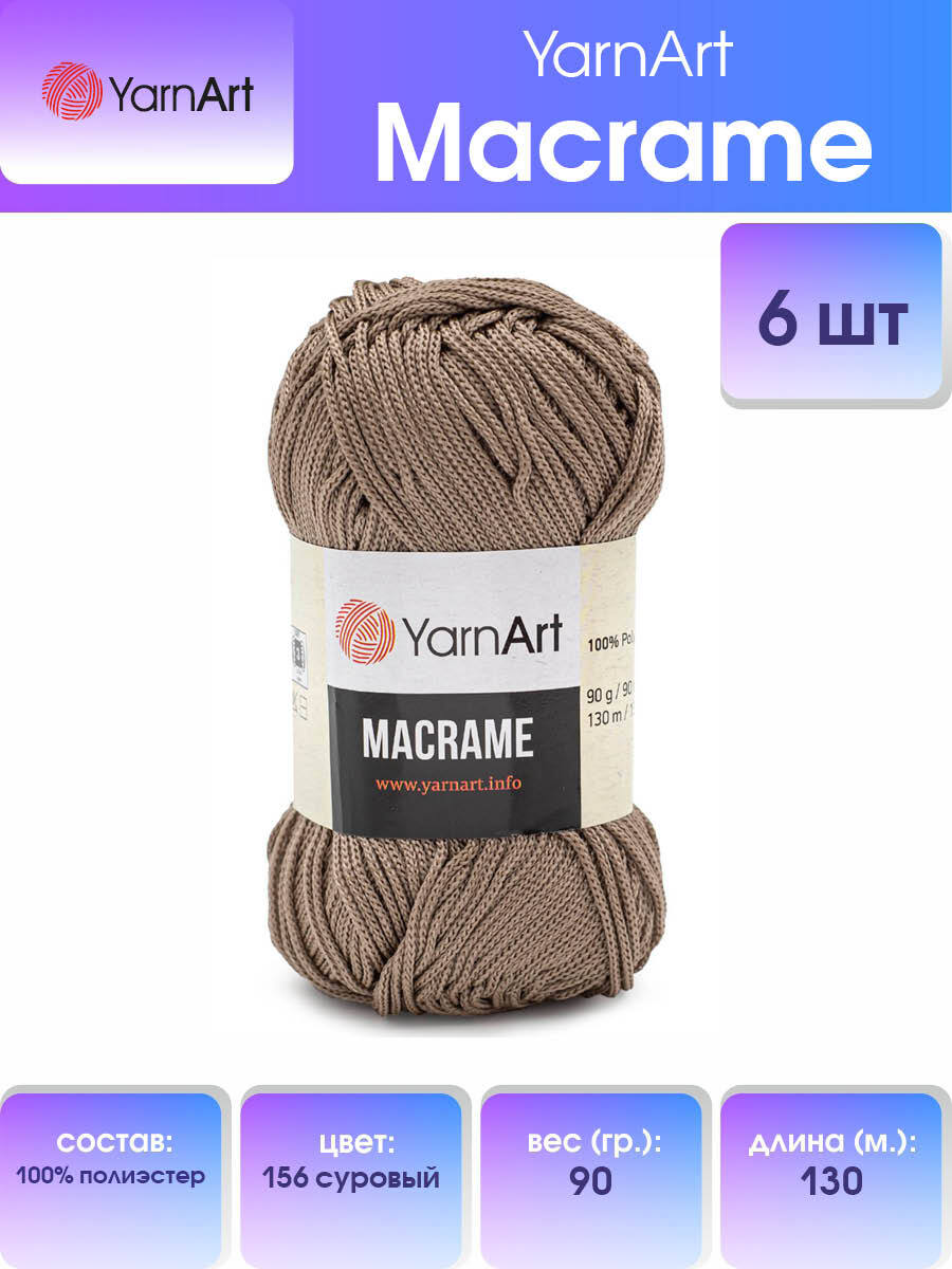 Пряжа YarnArt "Macrame" 90 г, 130 м (100% полиэстер)(упак 6 шт), 7730461_156 суровый, 6 шт