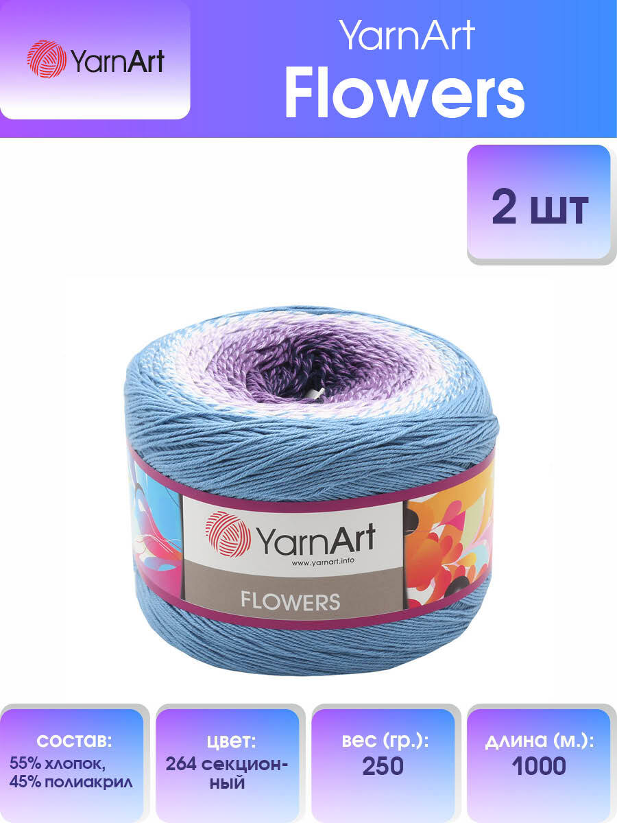 Пряжа YarnArt Flowers, мультиколор (264), 1000 м, 250 г, 2 шт