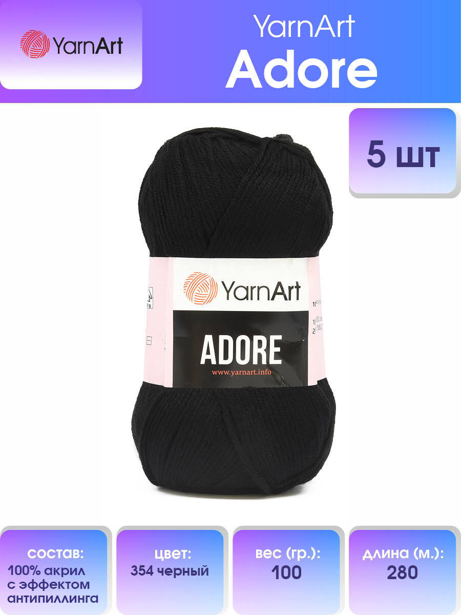 Пряжа YarnArt Adore, 7730460_00002, 354 черный, 280 м, 100 г х 5 шт