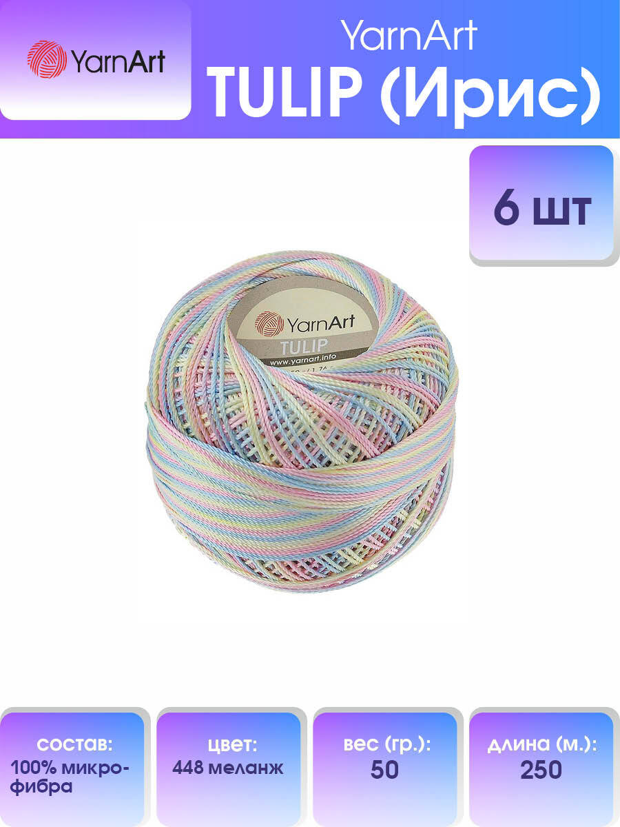 Пряжа для вязания YarnArt "Tulip", цвет: розовый, желтый, голубой (448), 250 м, 50 г, 6 шт