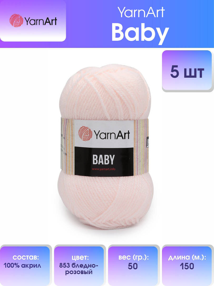 Пряжа YarnArt Baby Klassik, 372023_00053, 853 бледно-розовый, 50 г х 5 шт, 150 м