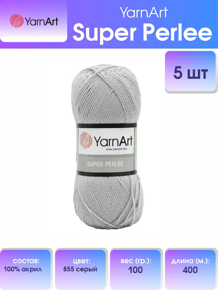 Пряжа YarnArt Super Perlee, 372062, 855 серый, 100 г, 400 м, 5 шт
