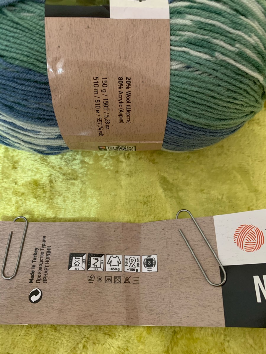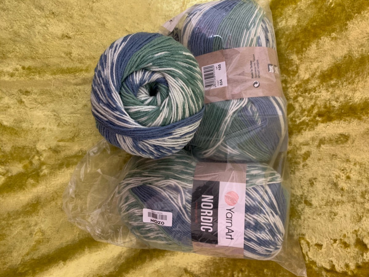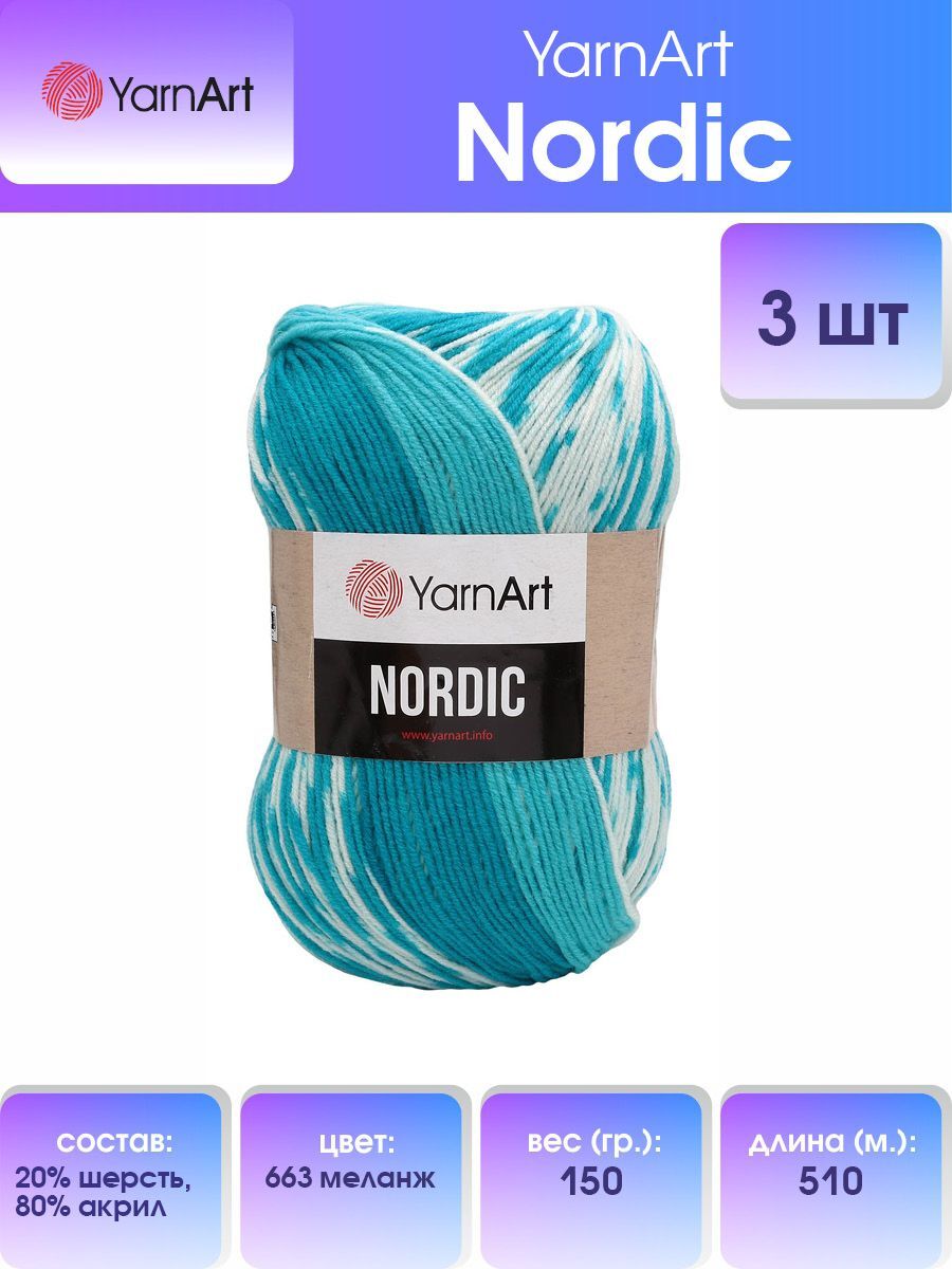 Пряжа YarnArt Nordic, голубой, бирюзовый, белый (663), 510 м, 150 г, 3 шт