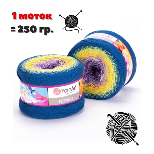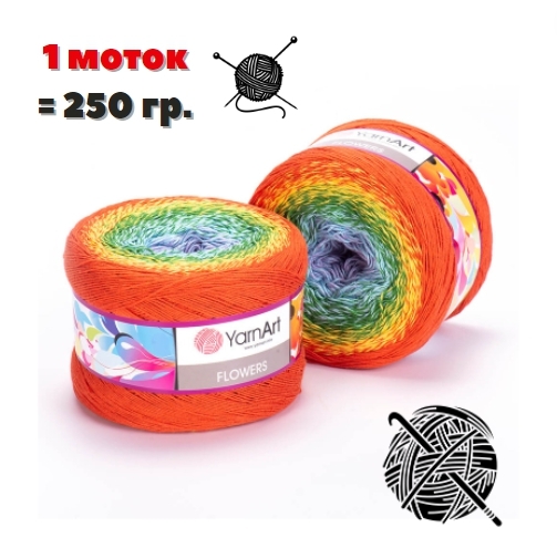 Пряжа YarnArt Flowers - 1 шт, радуга (255), 1000м/250г, 55% хлопок, 45% полиакрил /ЯрнАрт Фловерс/