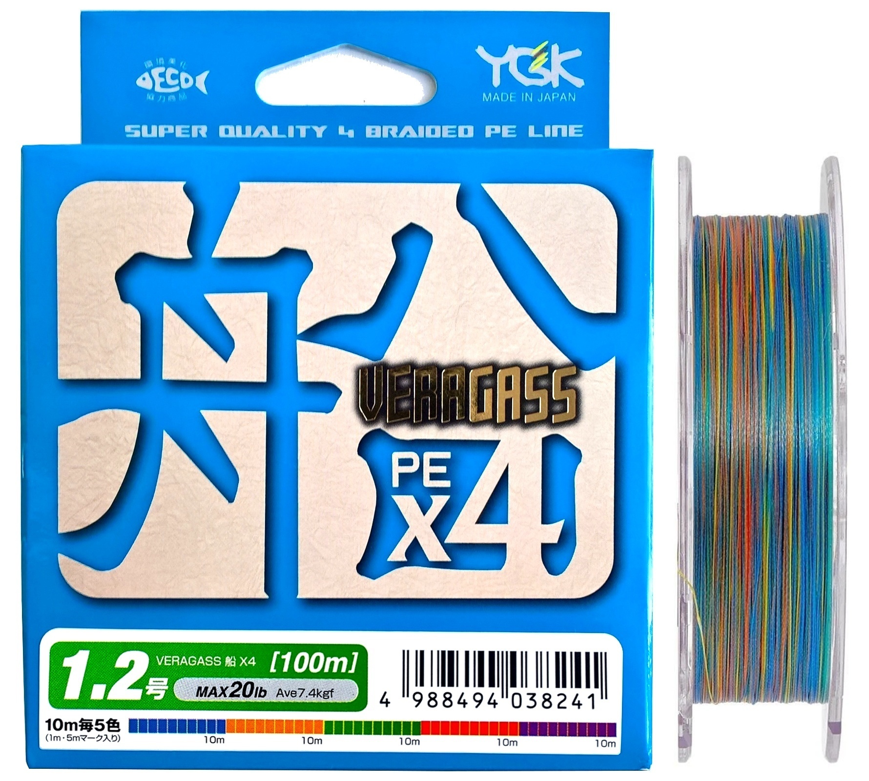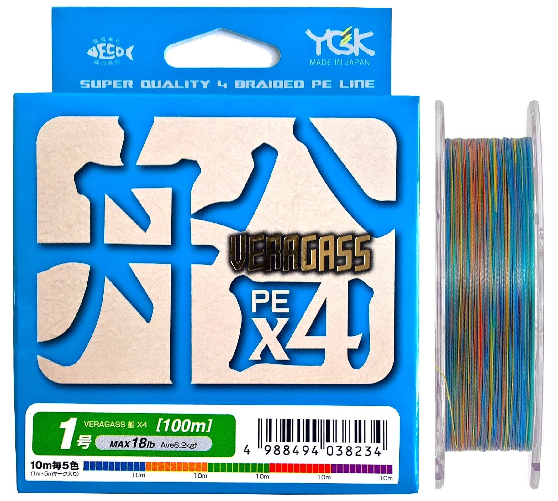 Плетёная леска (шнур) YGK Veragass X4 100м. #1.2 (20lb) многоцветный