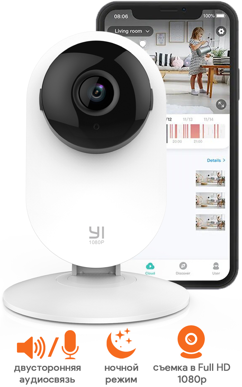 Камера видеонаблюдения wifi / Камера видеонаблюдения wifi для дома / Видеоняня YI IoT + microSD 32gb