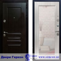 Дверь с зеркалом Геркон - Премьер Зеркало Сандал белый (100мм, 3К) (входная с зеркалом)