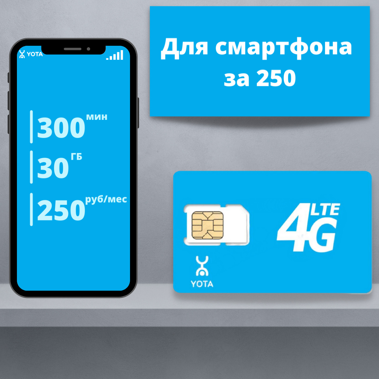 Симкарта Yota за 440р р/мес. с безлимитным интернетом для смартфона