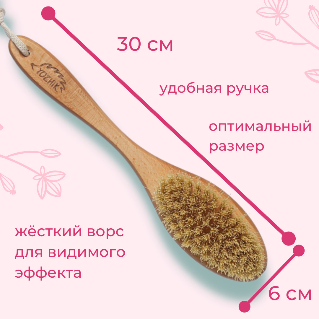 YOZHIK Щётка для антицеллюлитного массажа тела (30 см, жёсткая)