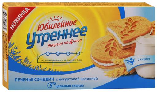 Печенье-сэндвич "Юбилейное" Утреннее с йогуртовой начинкой, 253г