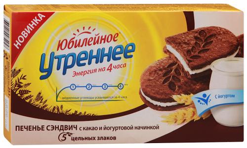 Печенье-сэндвич "Юбилейное" Утреннее с какао и йогуртовой начинкой, 253г