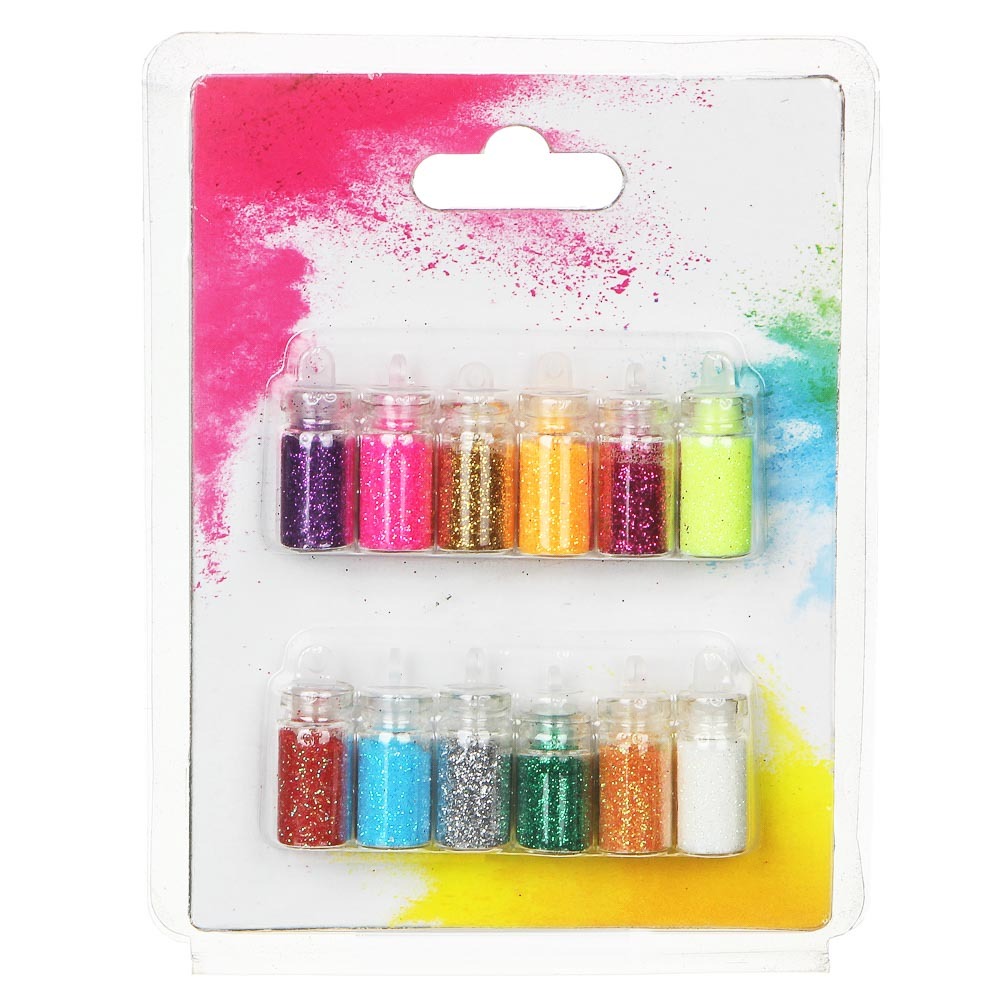 ЮниLook Набор декора блесток для дизайна ногтей и нейл-арта в баночках, 12шт, разноцветные
