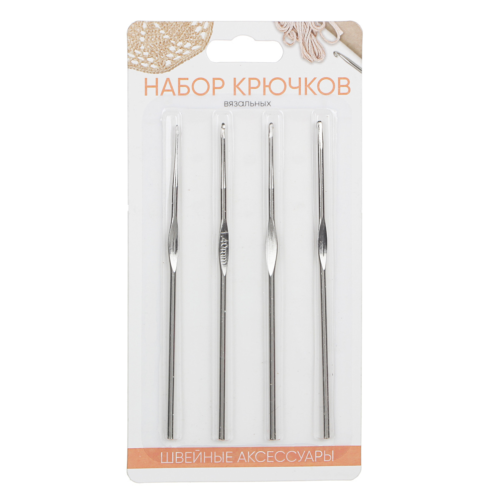 Набор крючков вязальных 4шт, сталь