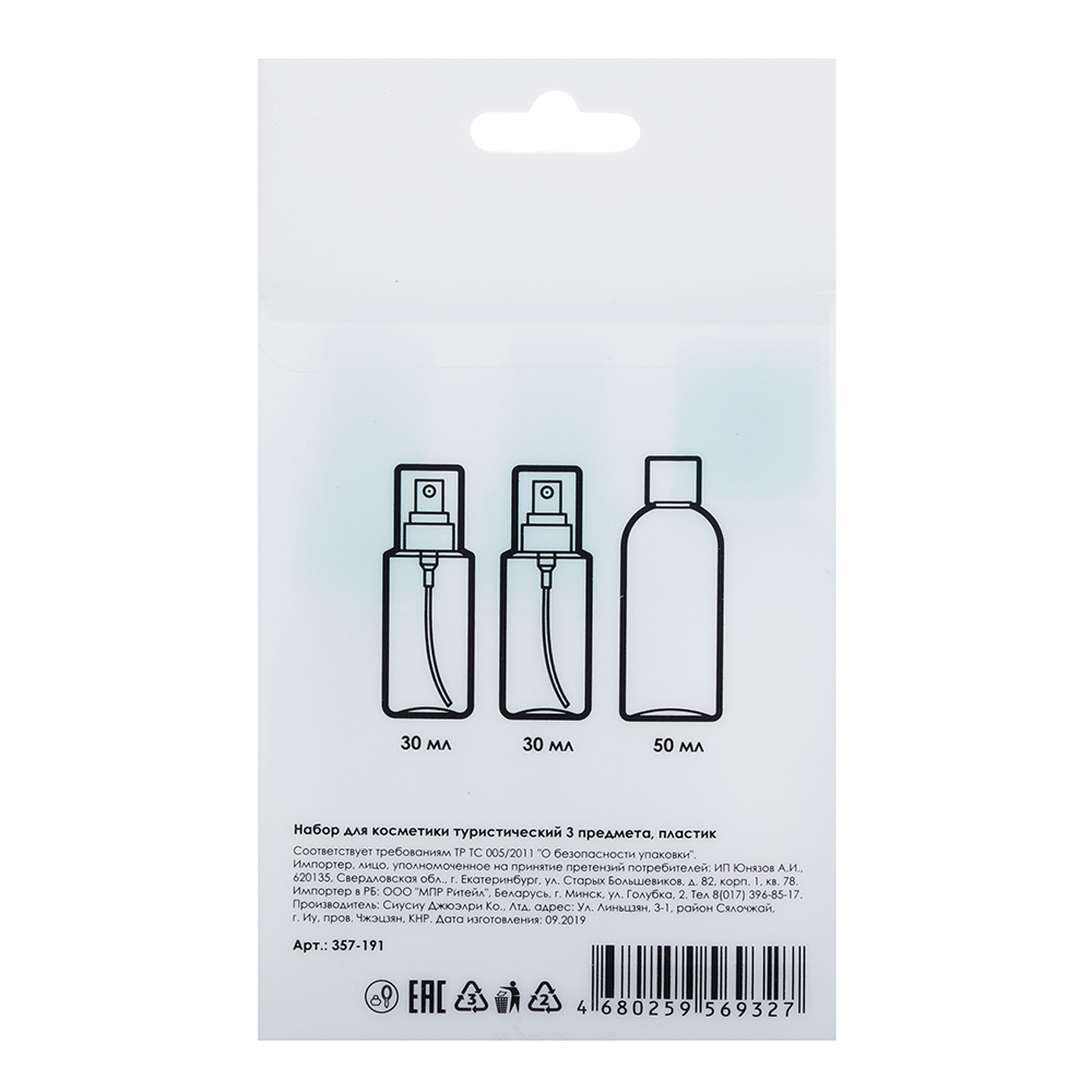 19211 Набор бутылочек 3шт (2шт - 100мл, 1шт - 80мл), пластик, МС-02