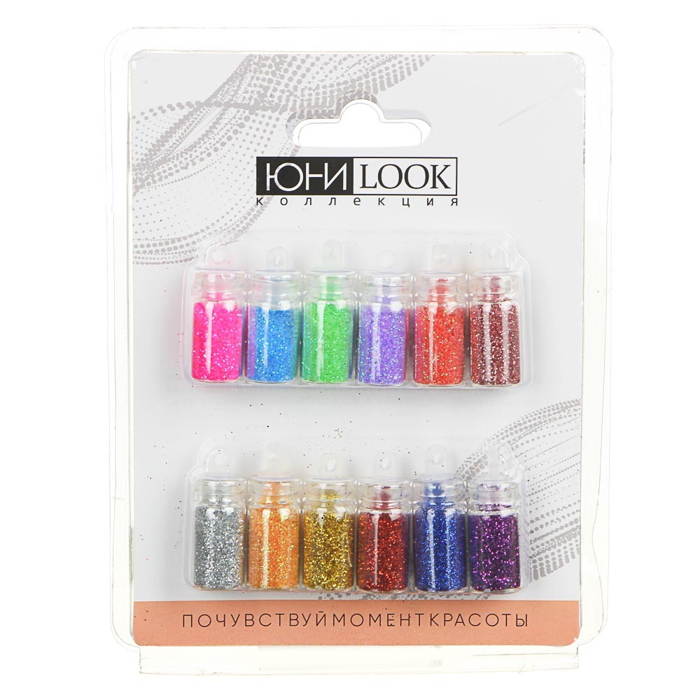 Декор для дизайна ногтей ЮниLook в баночках "Блёстки", 12 шт, разноцветные