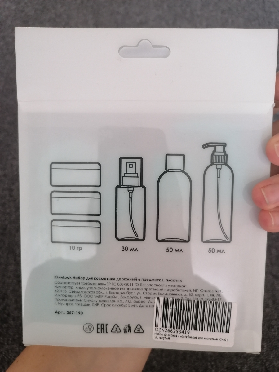 Дорожный набор для косметики 6 предметов