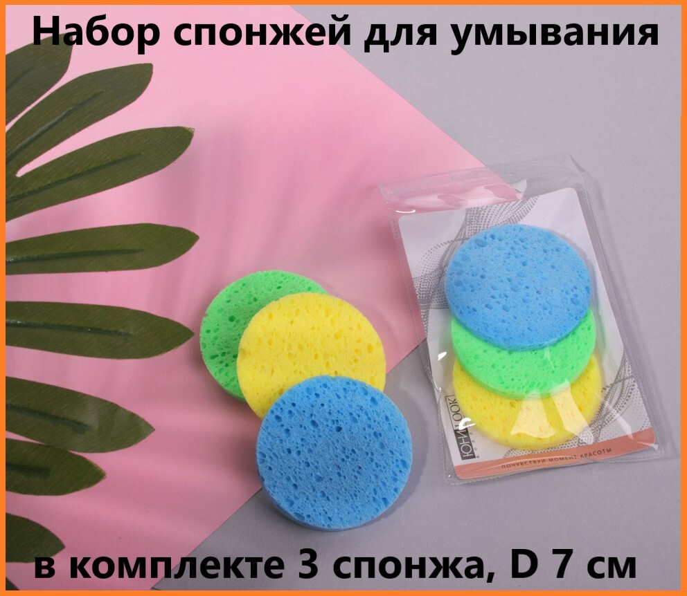 Спонжи для умывания, 3 шт, d.7x0, 8 см