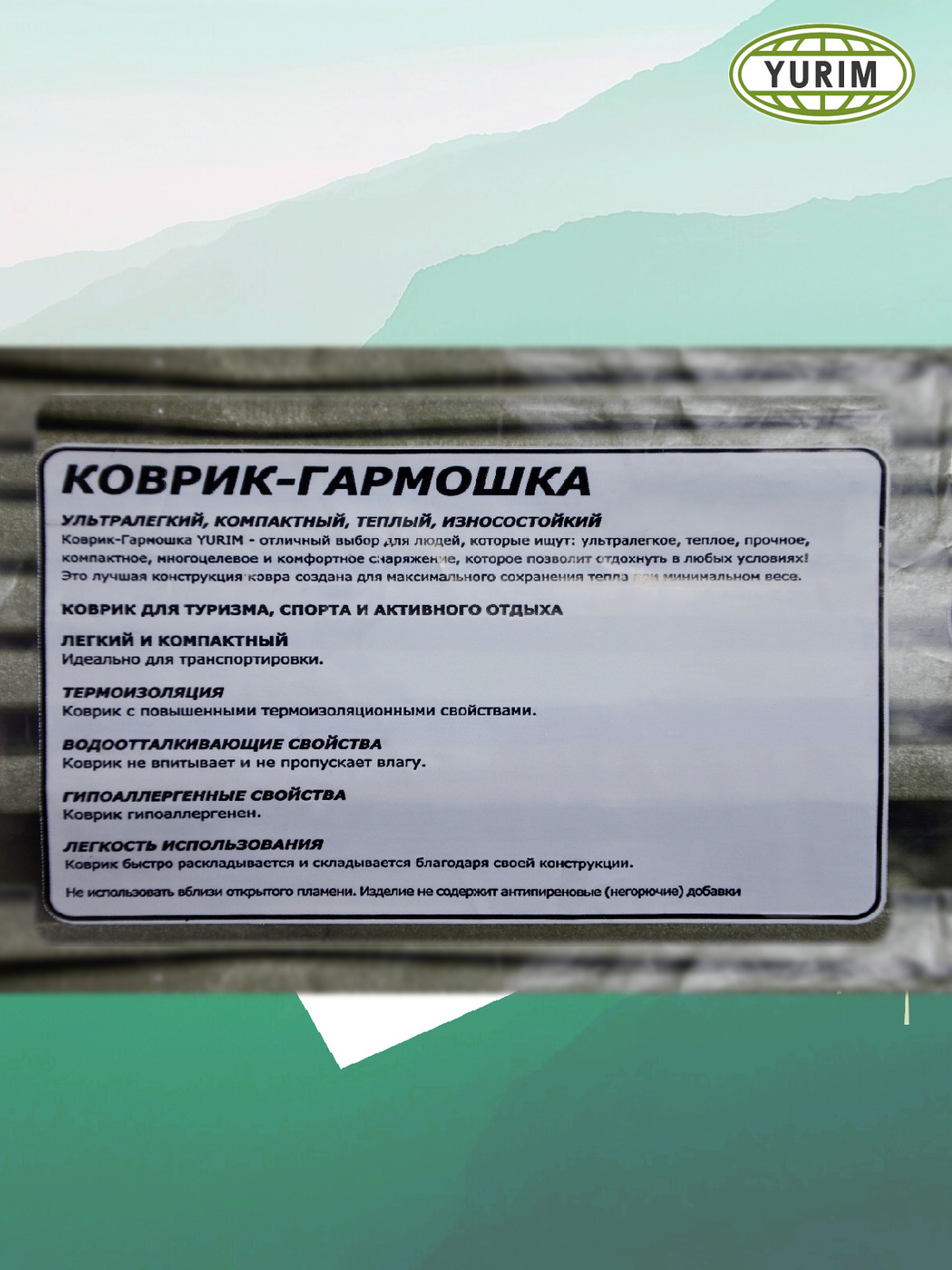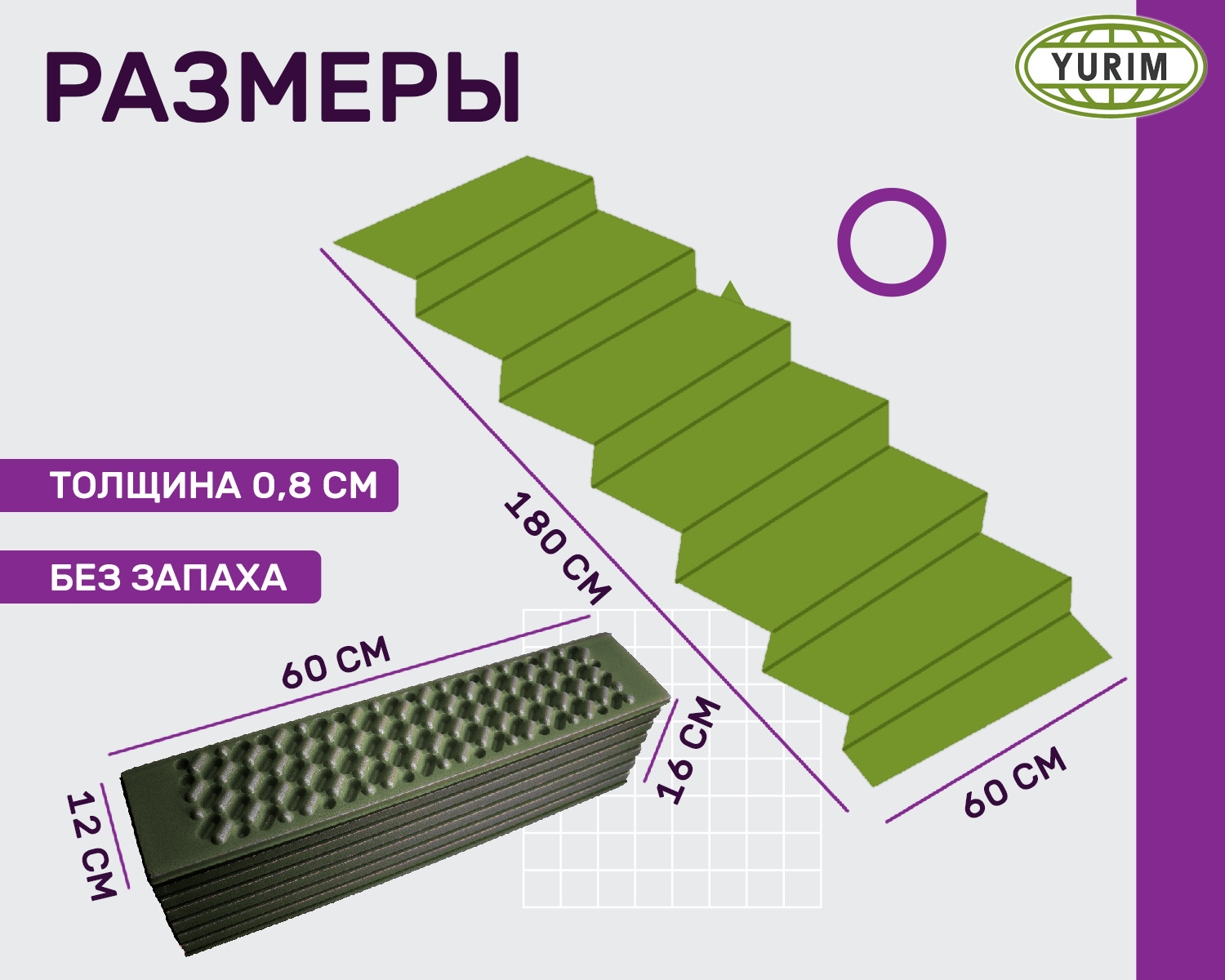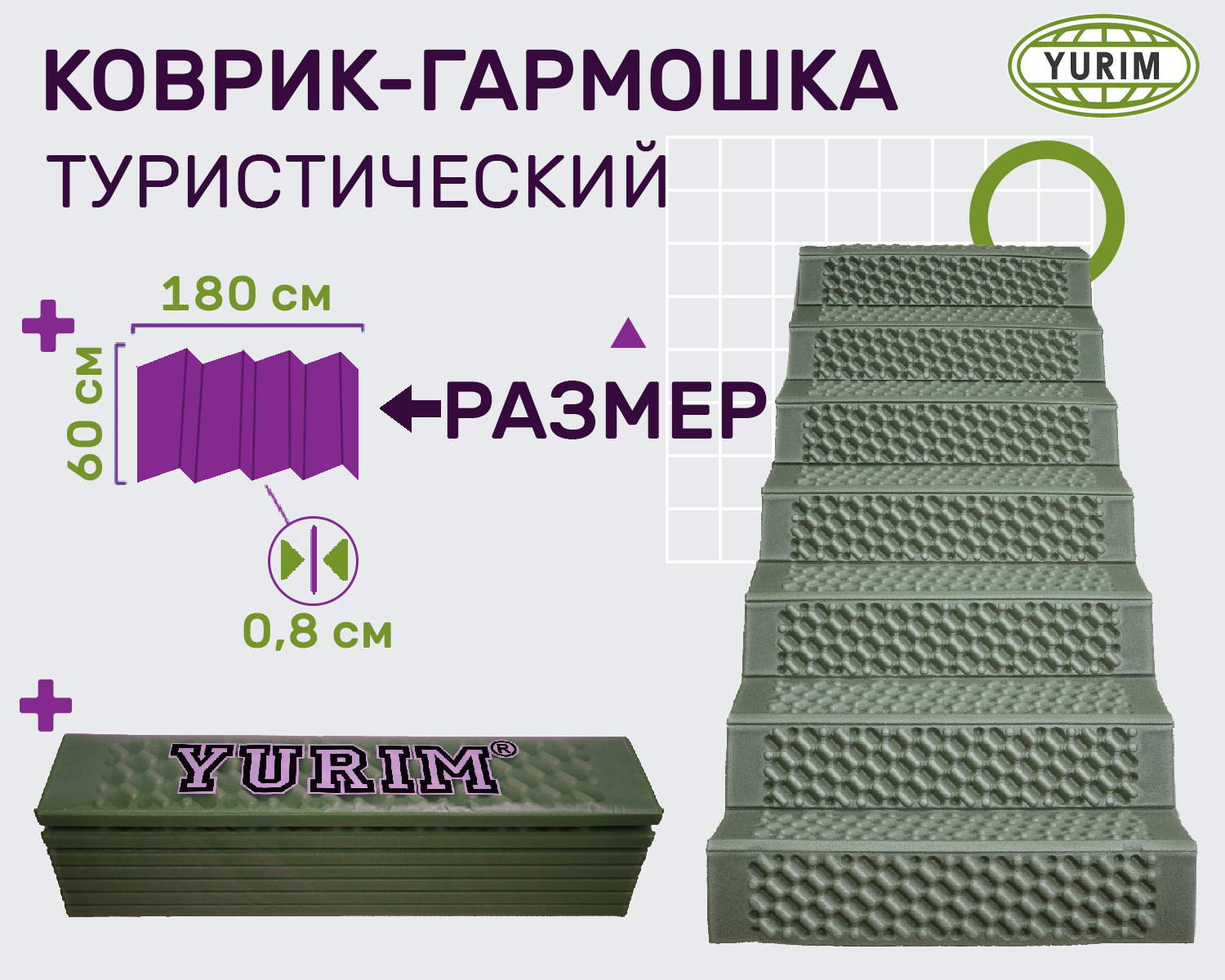 Коврик туристический "Гармошка"/складной 8 мм 180х60 см, хаки-черный