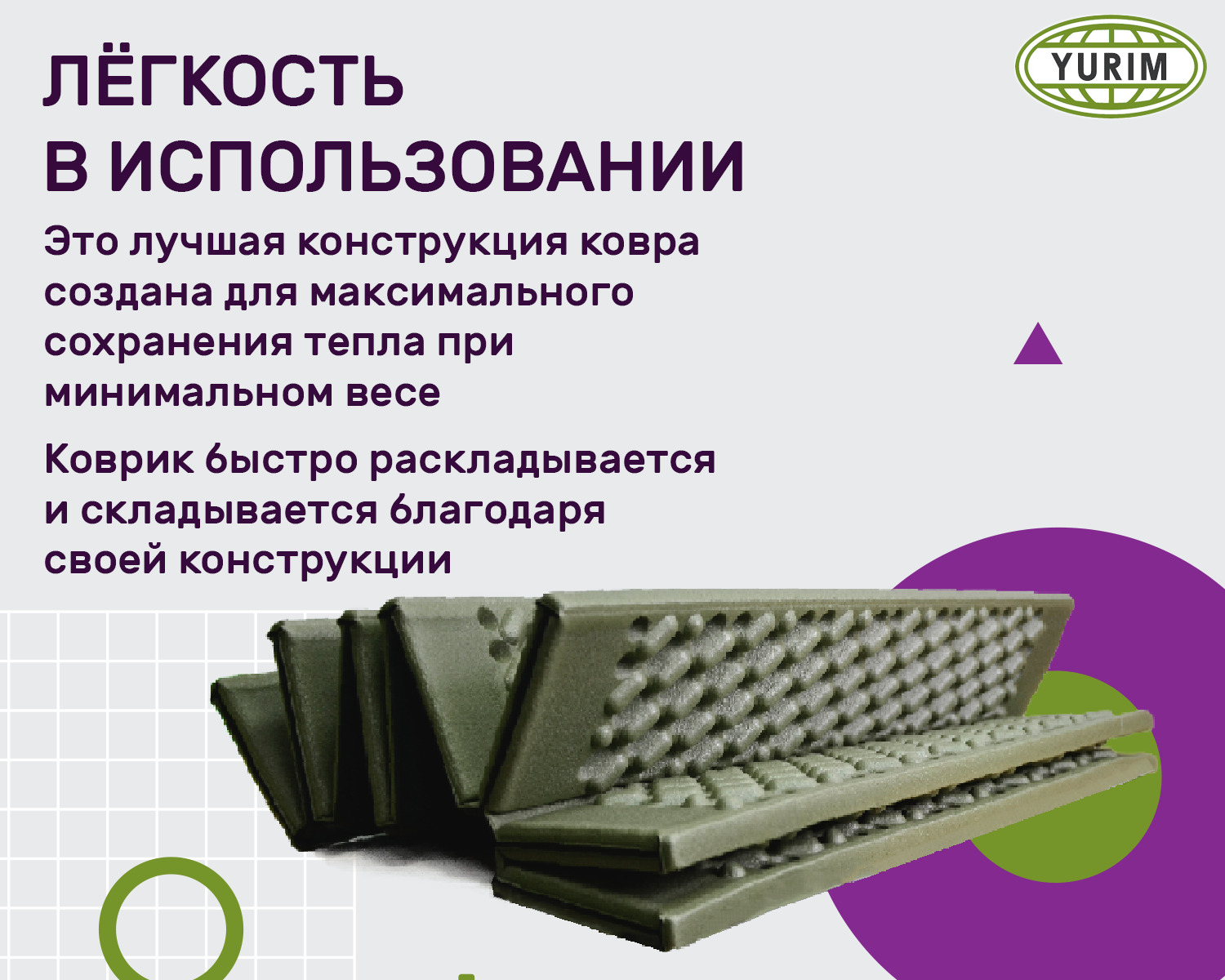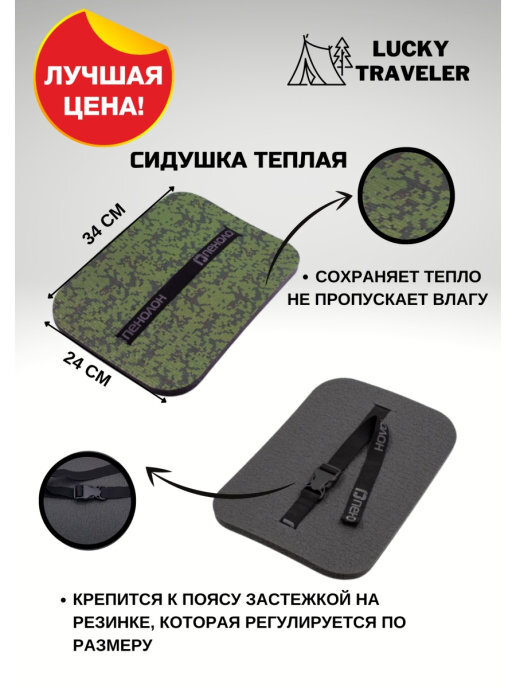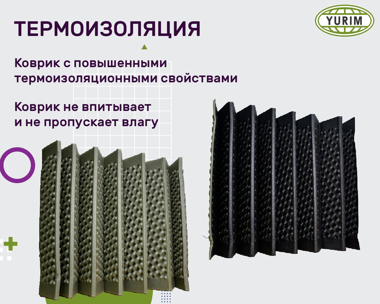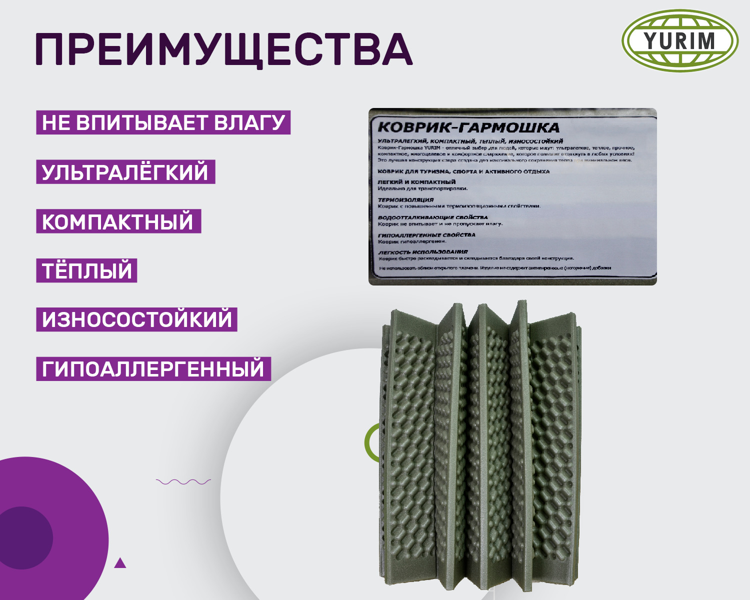 Коврик туристический "Гармошка"/складной 8 мм 180х60 см, хаки-черный