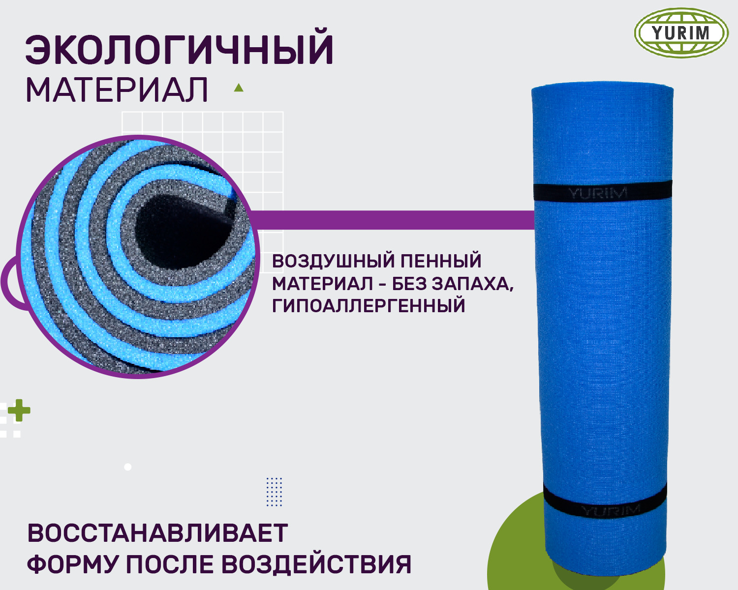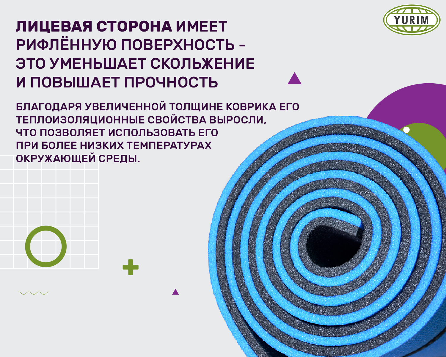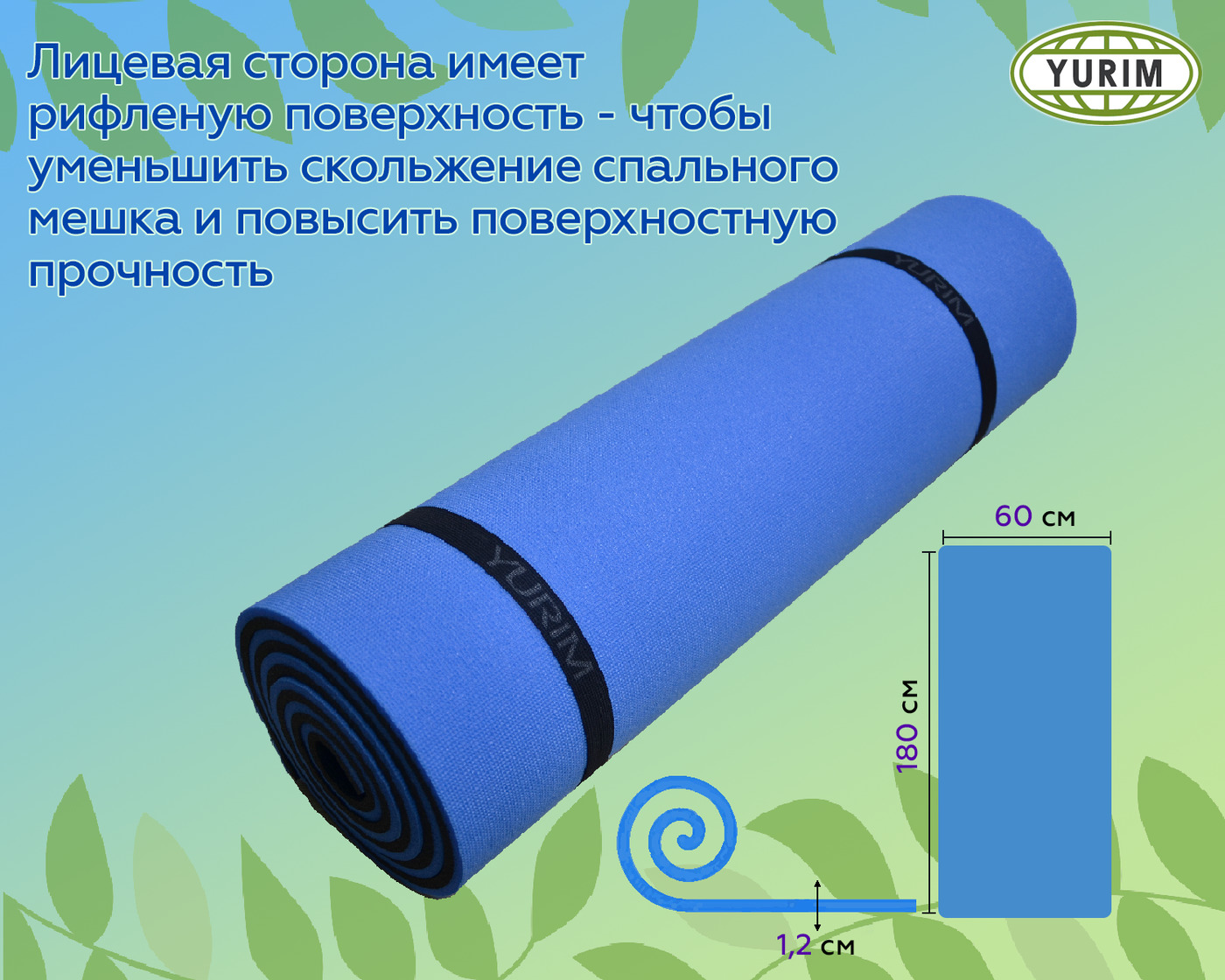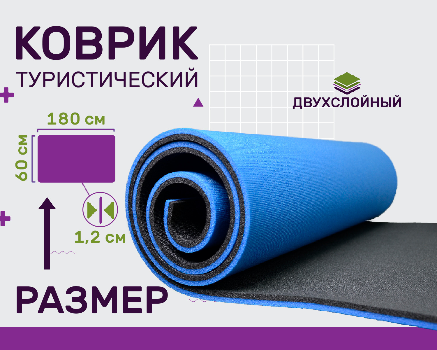Коврик туристический повышенной плотности, 12 мм 180х60 см, сине-черный