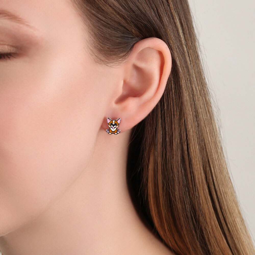 Ювелир Карат Серьги серебряные детские с эмалью "Собаки" 20210331/9БГ-БЕЖГ-ОХГ-РГ-ЧГ