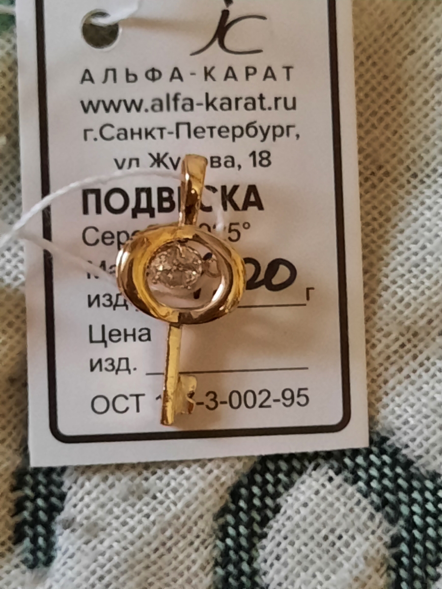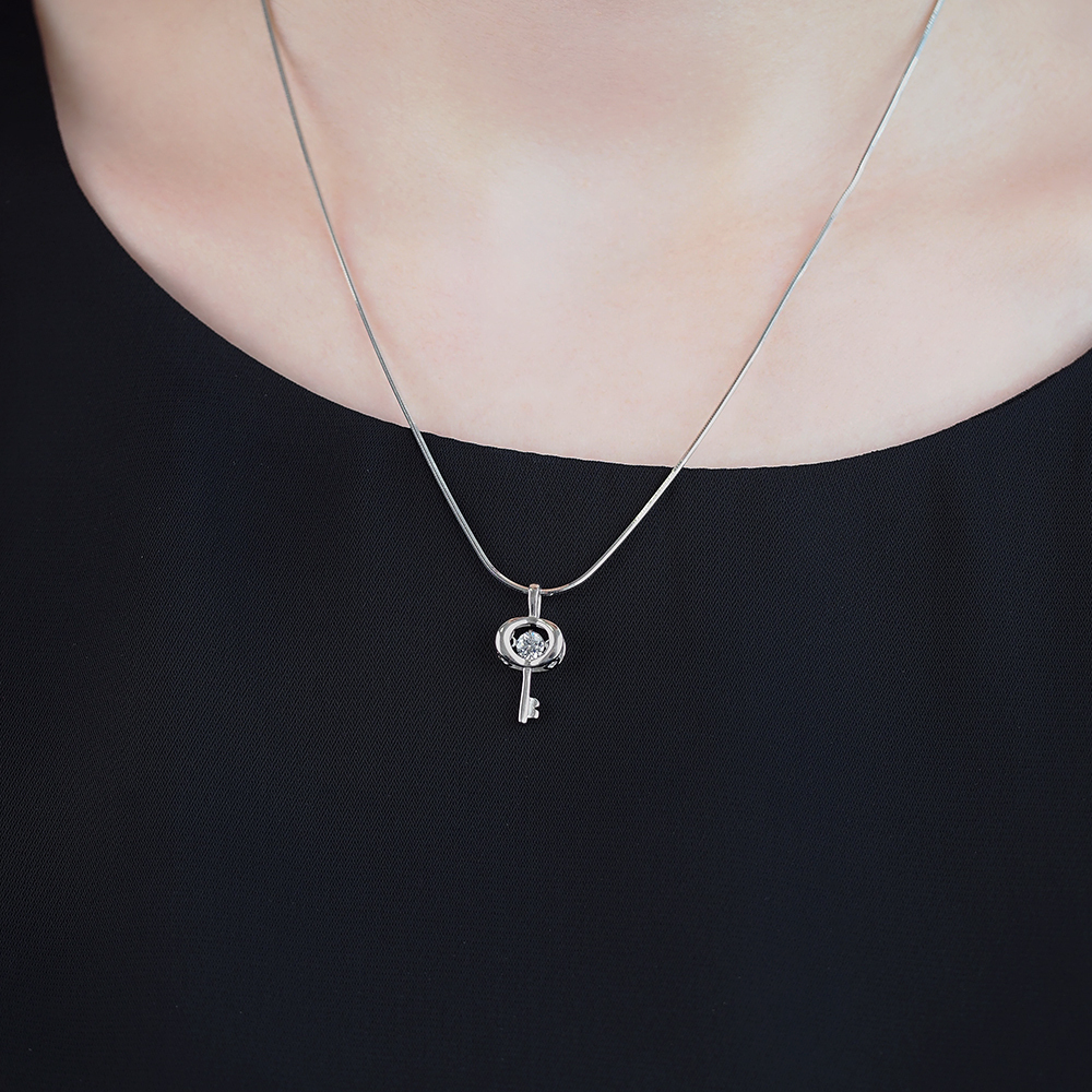 Ювелир Карат Подвеска Кулон серебряный Ключ с танцующим качающимся фианитом, серебро 925