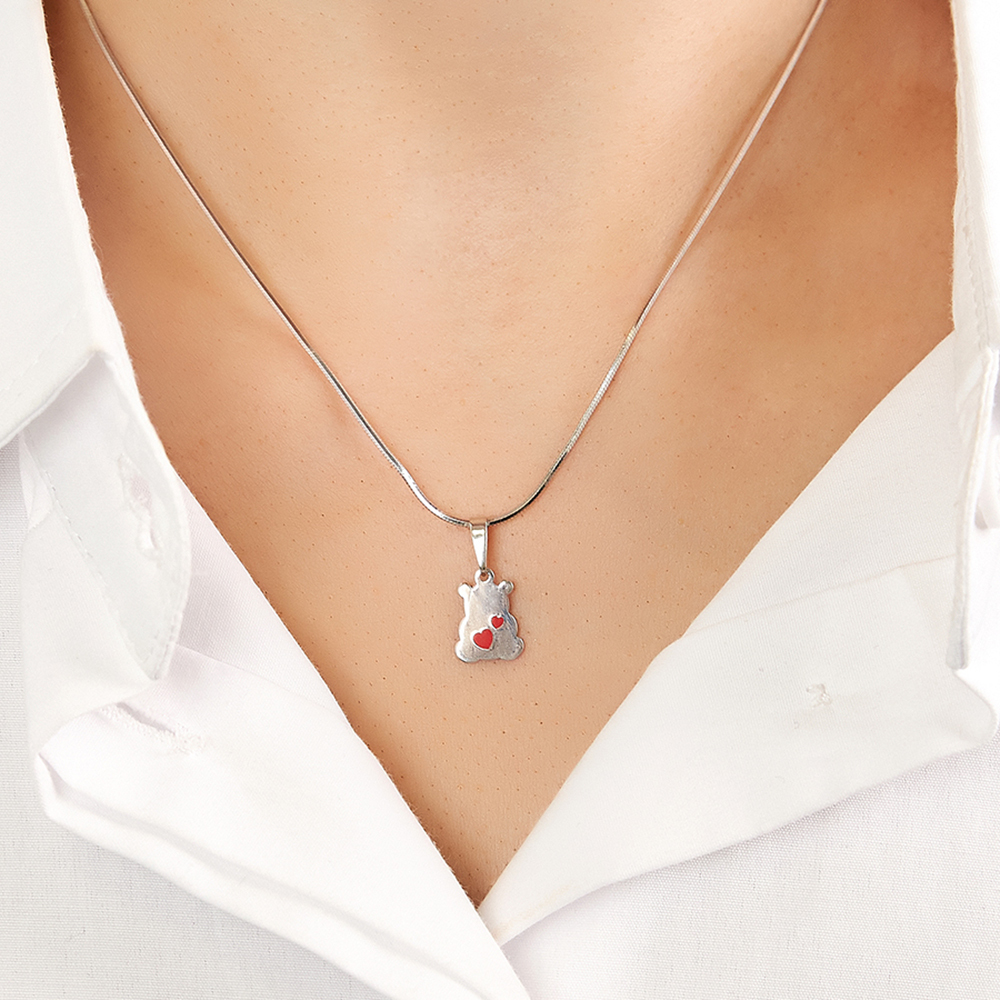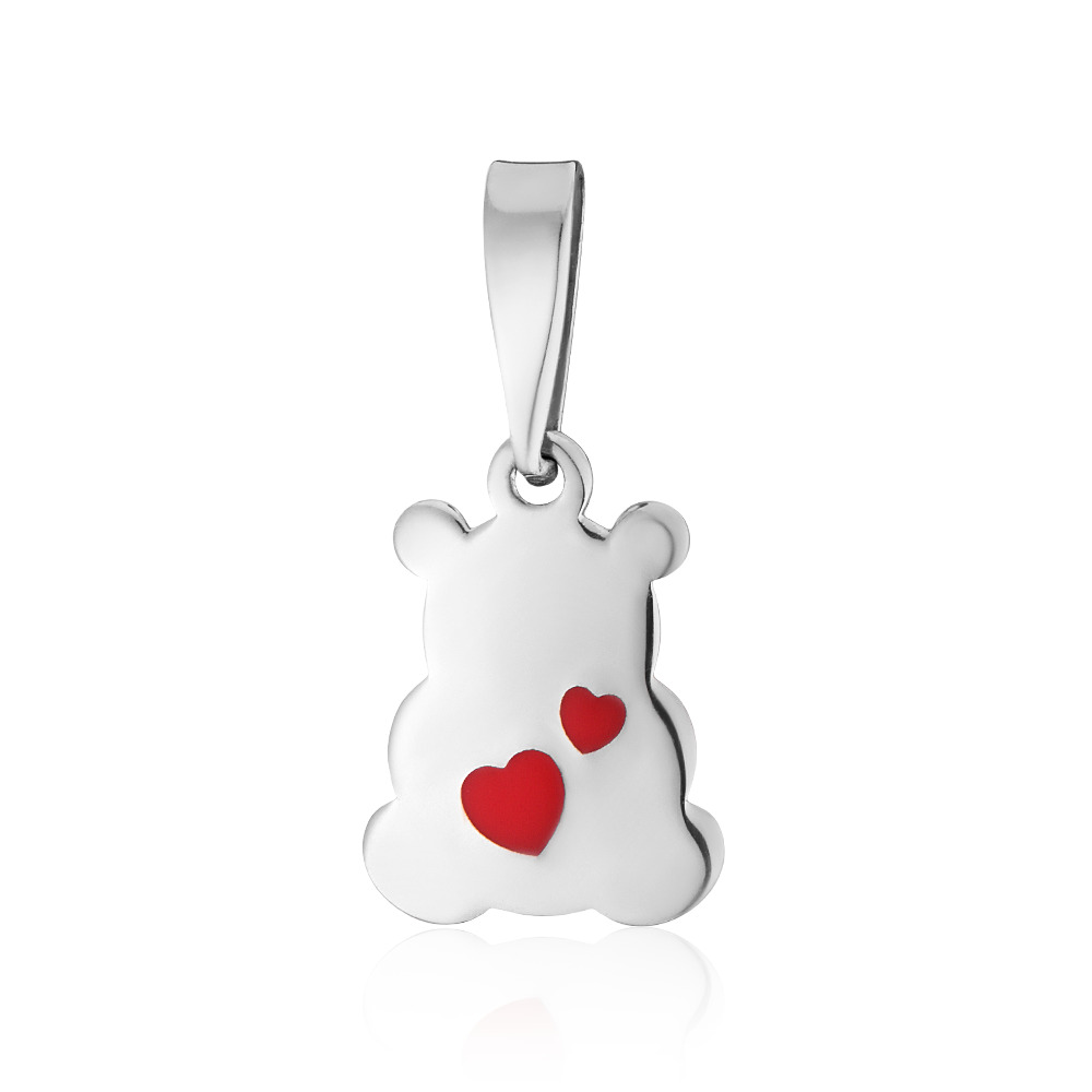 Ювелир Карат Подвеска Кулон серебряный Мишка, медведь с эмалью, серебро 925