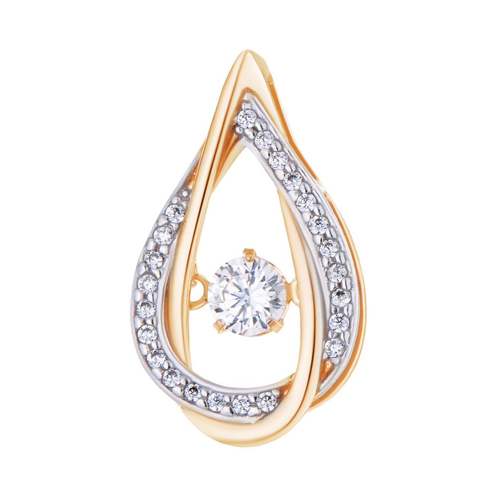 Ювелир Карат Подвеска Кулон серебряный в позолоте с танцующим качающимся фианитом, серебро 925