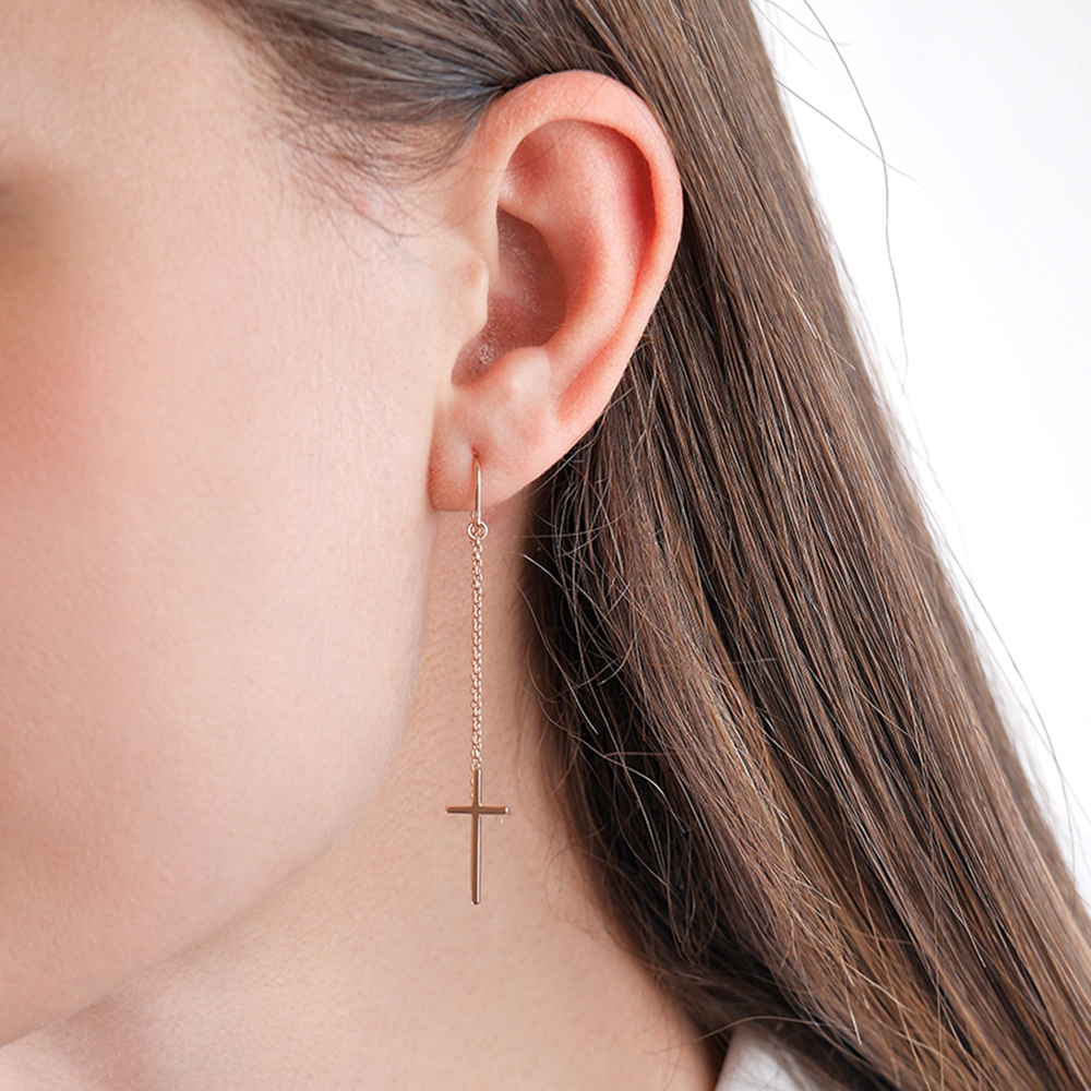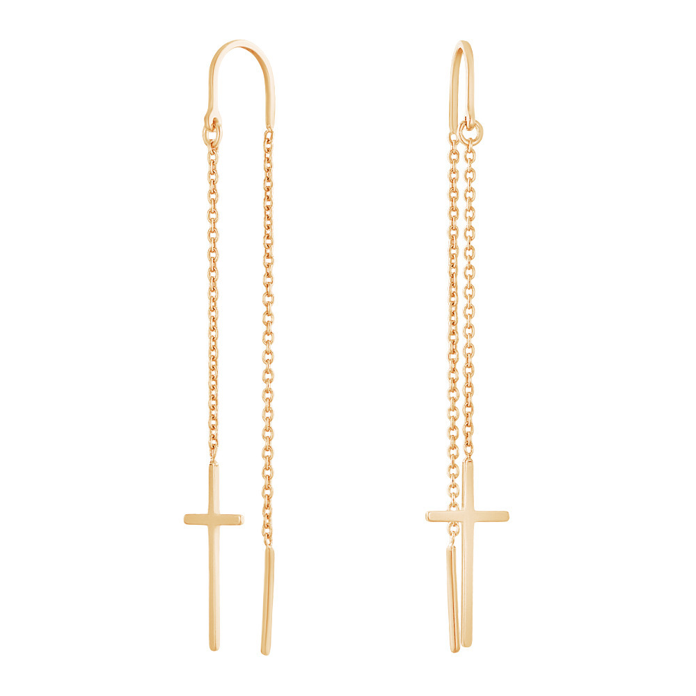 Ювелир Карат Серьги ювелирные серебряные подвески "Кресты", серебро 925, позолота