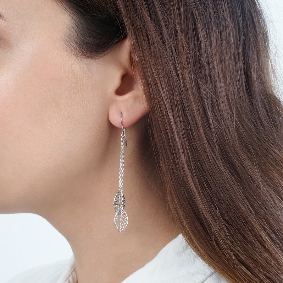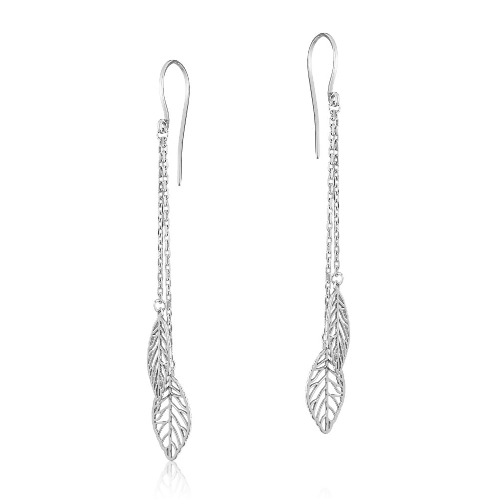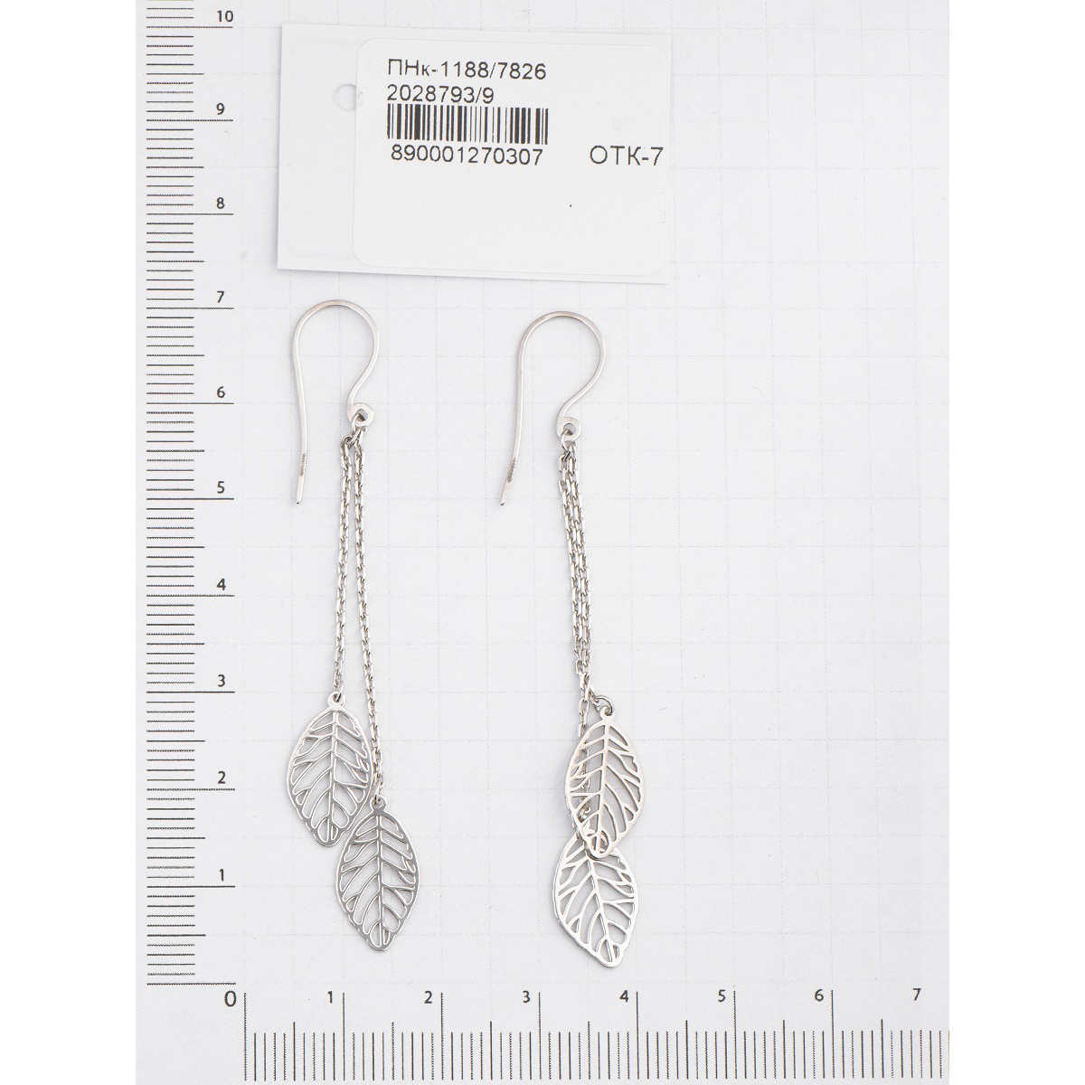 Ювелир Карат Серьги ювелирные серебряные длинные "Листья" на цепочке, серебро 925, родий