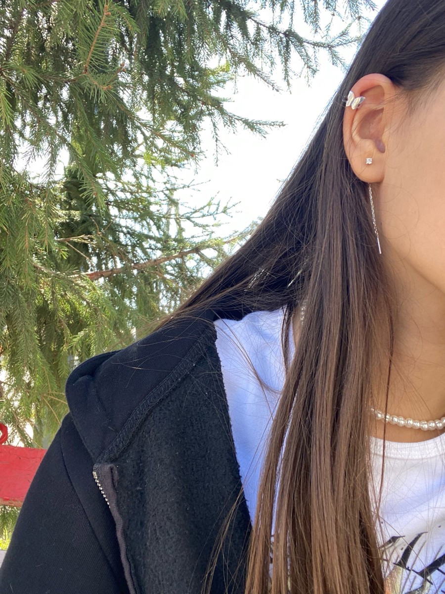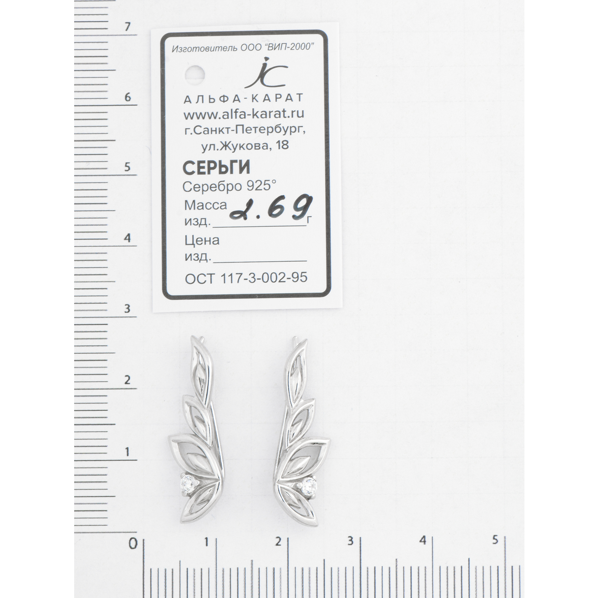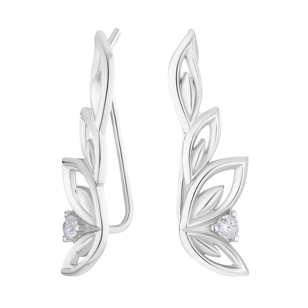 Ювелир Карат Серьги серебряные зажимы, эльфы, каффы, клаймберы с фианитами "Листья", серебро 925