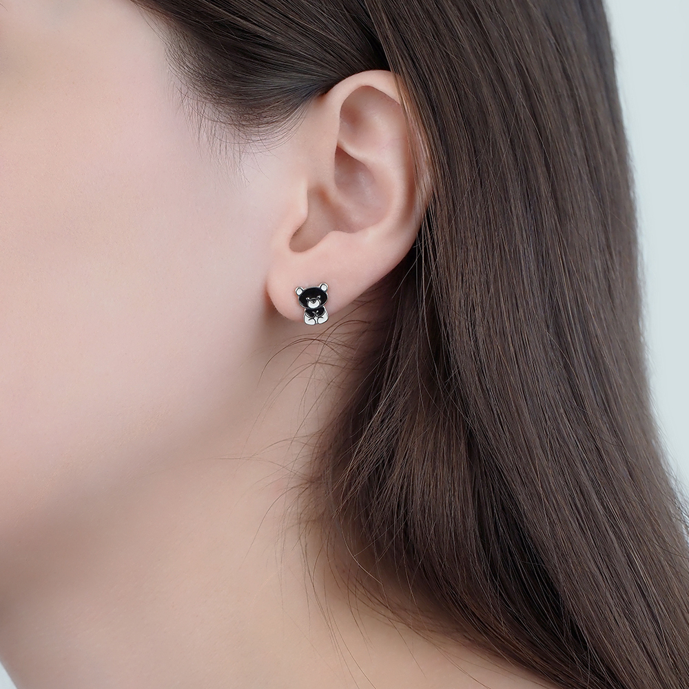Ювелир Карат Серьги ювелирные серебряные пусеты для детей, гвоздики "Мишки" с эмалью, серебро 925