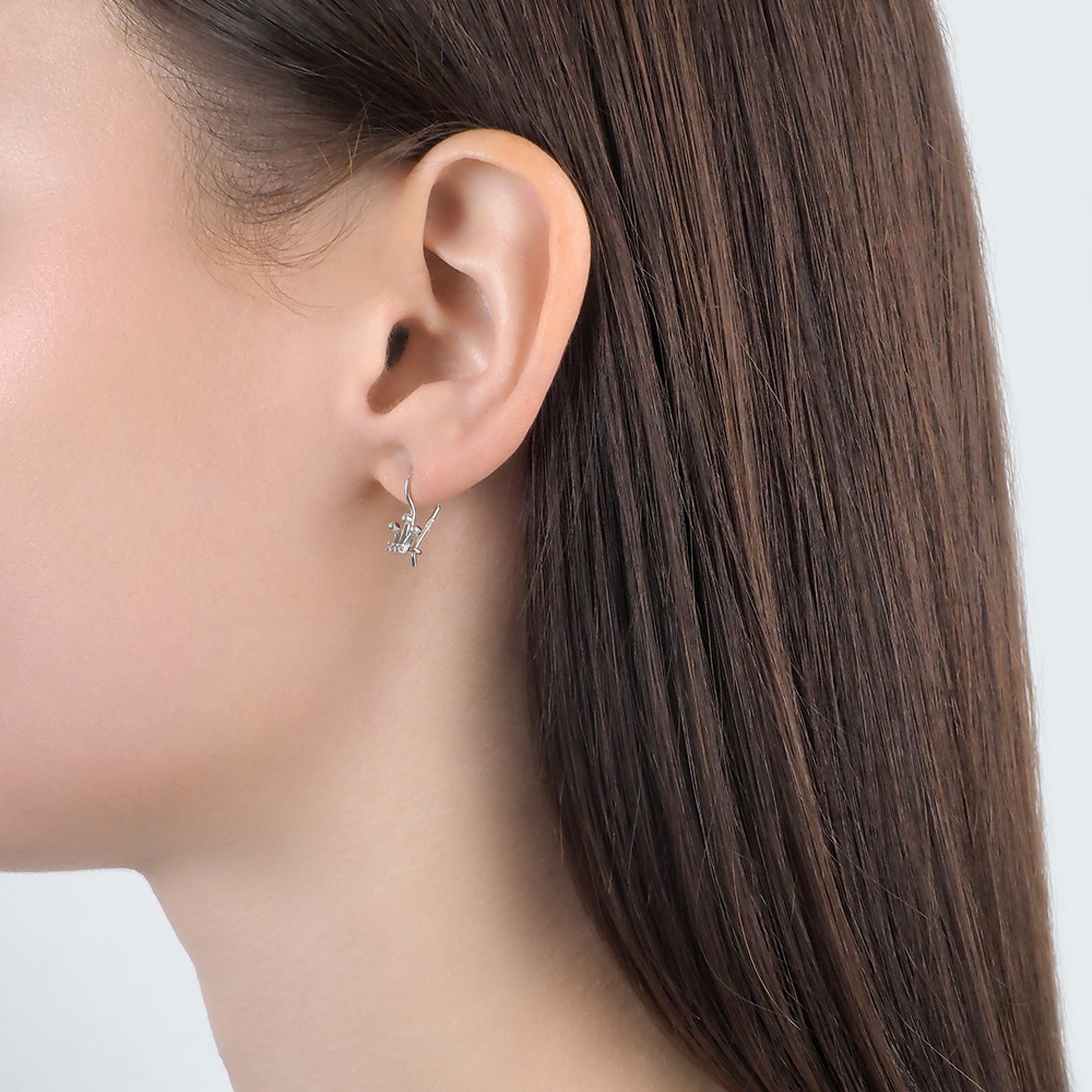 Ювелир Карат Серьги серебряные детские "Заяц" с эмалью и фианитами, серебро 925