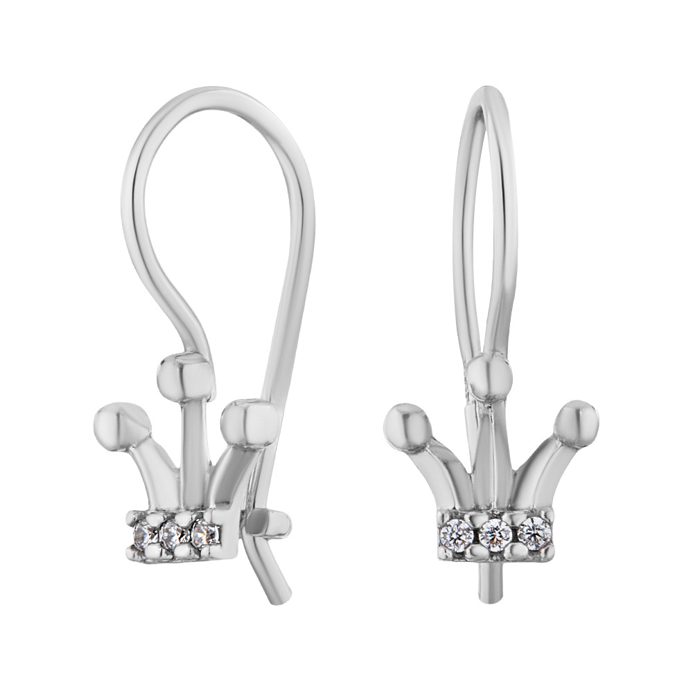Ювелир Карат Серьги серебряные детские "Корона" с фианитами