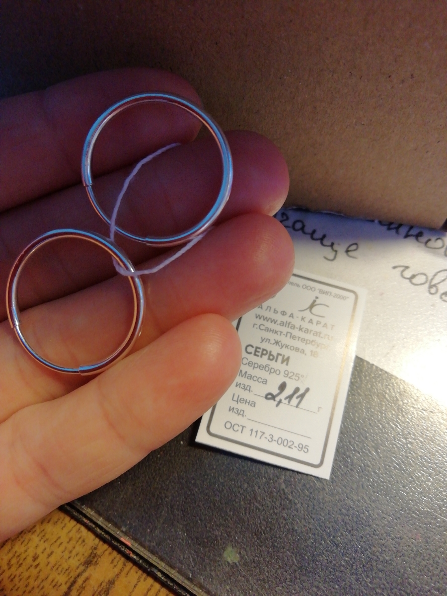 Ювелир Карат Серьги серебряные круглые конго, кольца с алмазной гранью, серебро 925