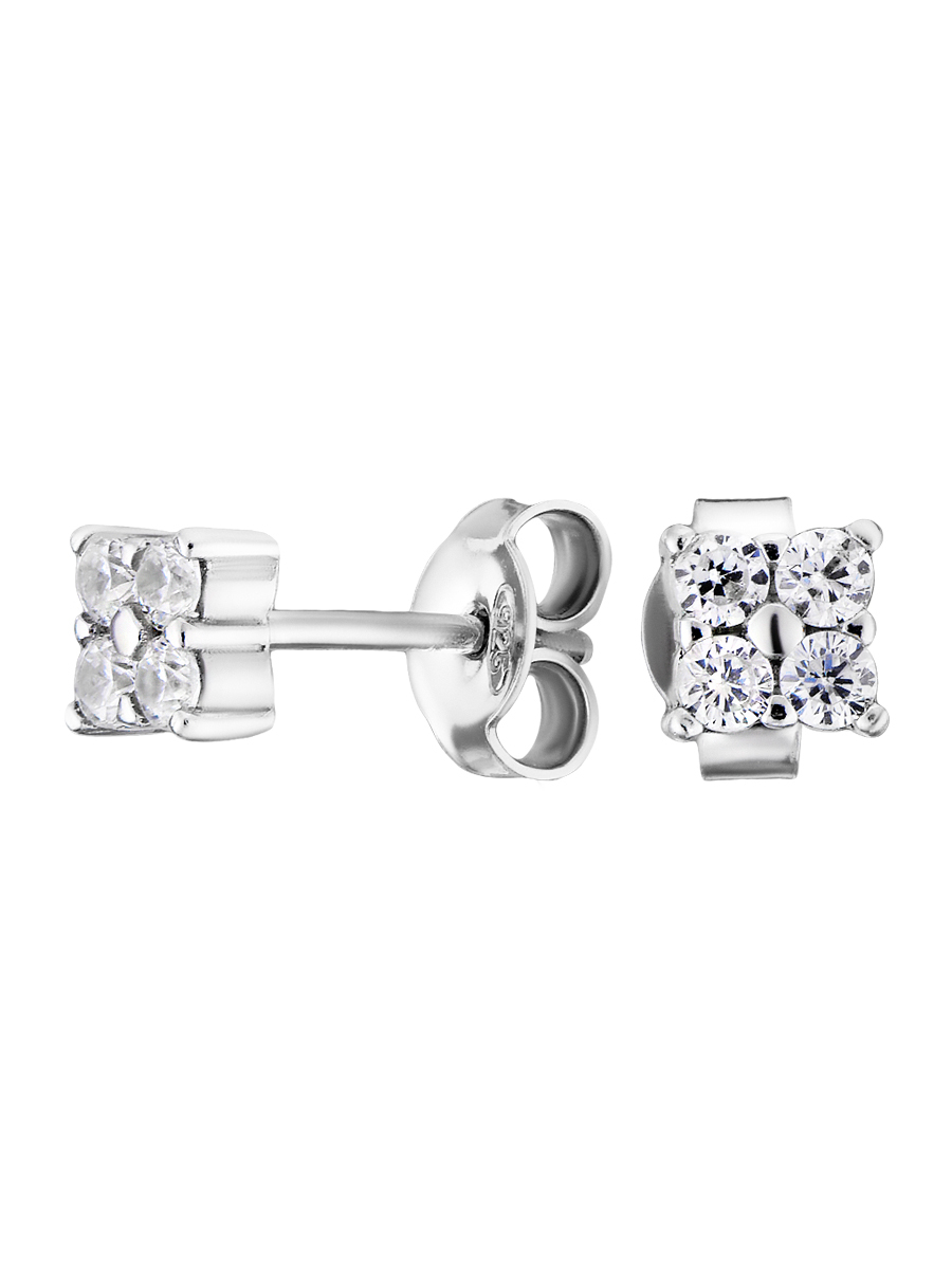 Ювелир Карат Серьги серебряные пусеты, гвоздики с фианитами, серебро 925