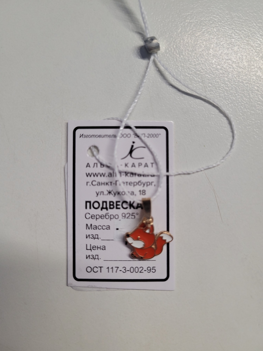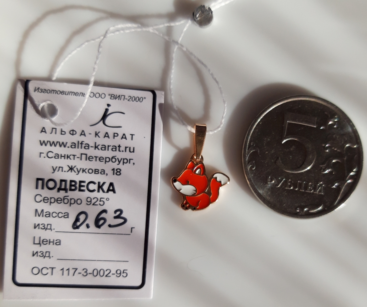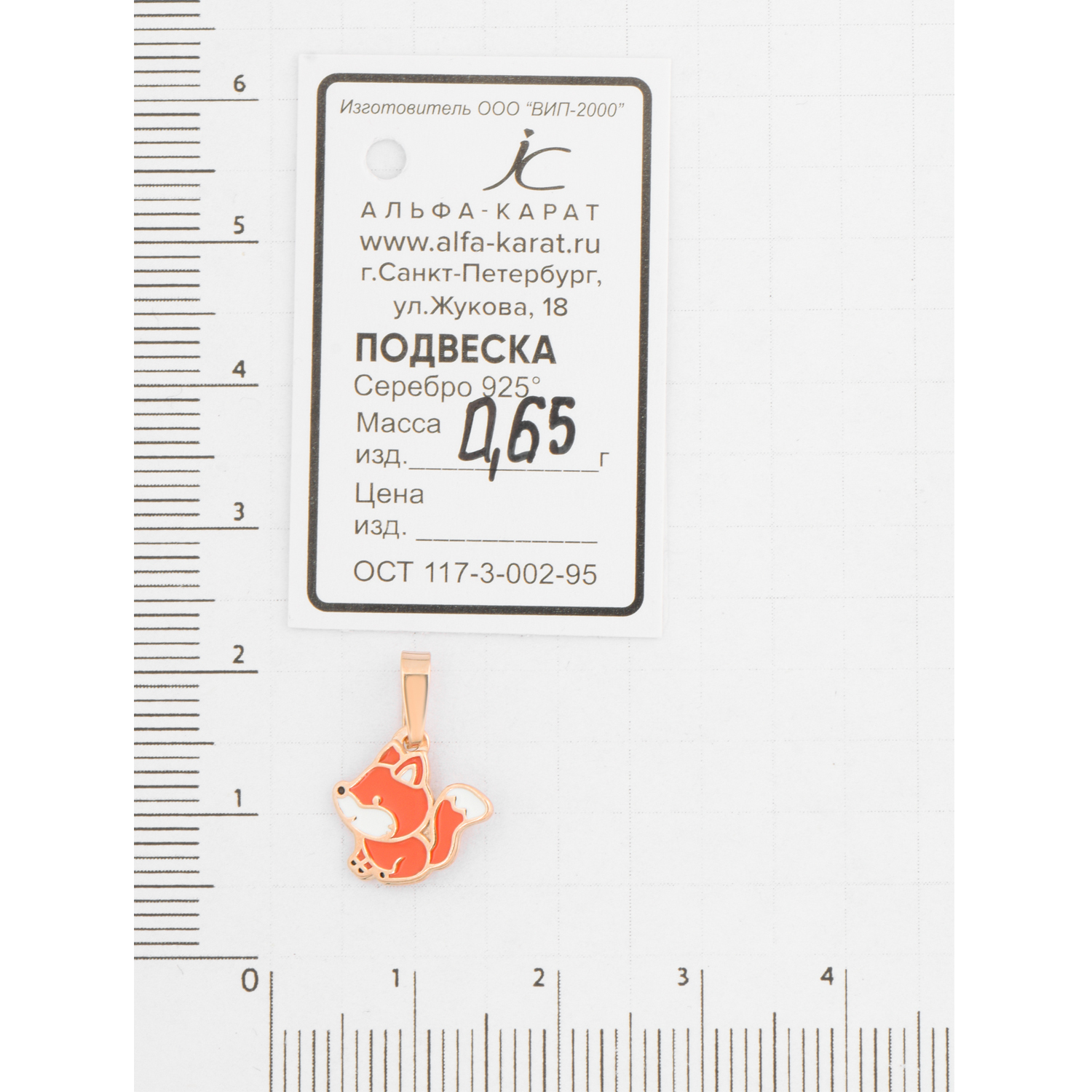 Ювелир Карат Подвеска Кулон серебряный Лиса с эмалью, серебро 925