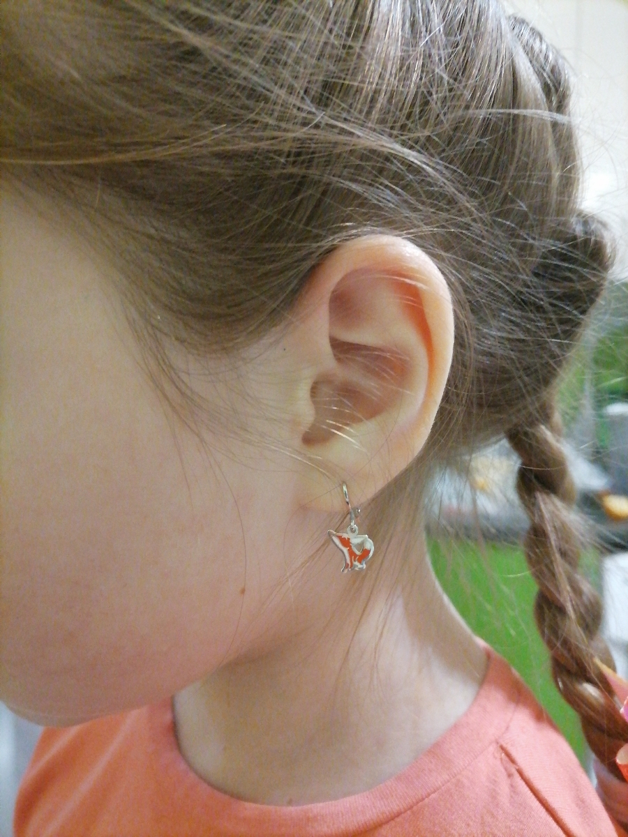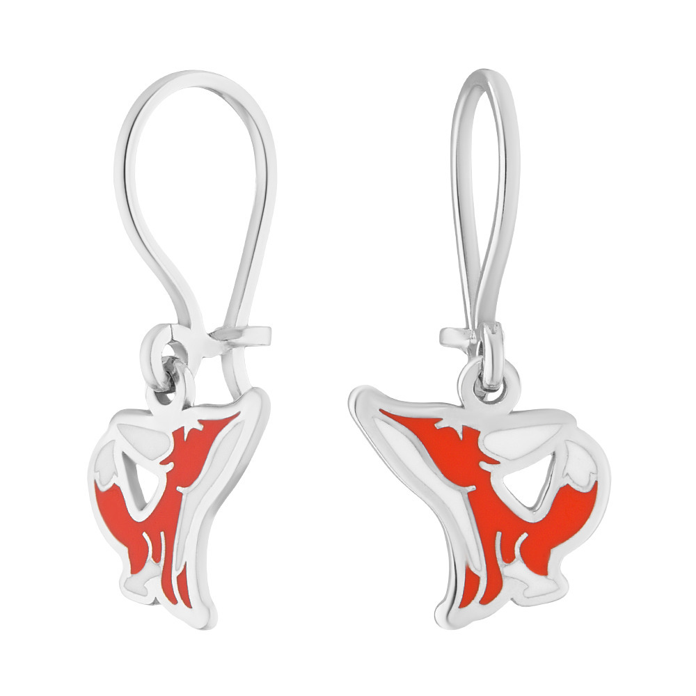 Ювелир Карат Серьги ювелирные серебряные детские "Лиса" с эмалью, серебро 925